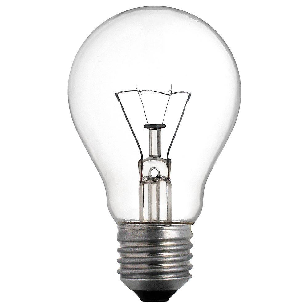 Колба лампы – прозрачная грушевидной, грибковой, формы, а также формы свечи и шарика. Лампы поставляются со стандартными цоколями E27/Е14 в мощностях: 25 Вт, 40 Вт, 60 Вт, 75 Вт, 95 Вт, 150 Вт, 200 Вт и 500 Вт. Средний срок службы лампы накаливания составляет 1000 часов.Производитель: