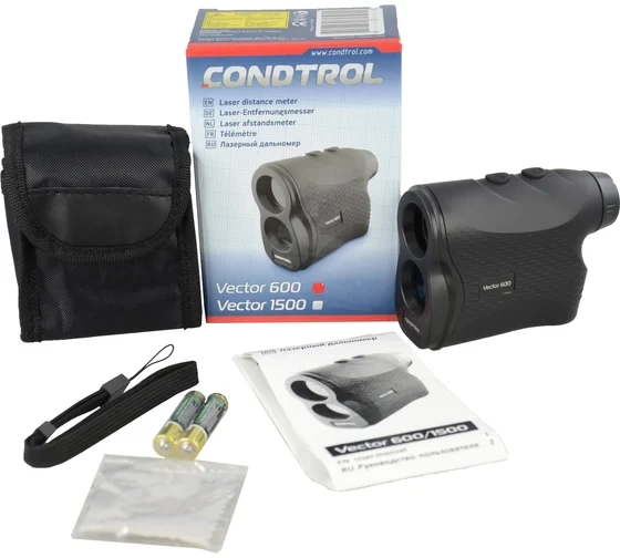 Шестикратное увеличение и настройка фокусировки позволяют быстро обнаружить цель, даже если она расположена за сотни метров от пользователя. Результаты измерений накладываются на изображение в зрительной трубе.Дальномер CONDTROL Vector 600 имеет две кнопки управления. Одна кнопка предназначена для включения, выключения и измерения, а вторая – для переключения режима и единиц измерения. Кнопки расположены в верхней части корпуса, благодаря чему проводить измерения можно одной рукой.CONDTROL Vector 600 измеряет расстояния до объектов, расположенных от 5 м до 600 м. Измерения могут быть как единичными, так и непрерывными.