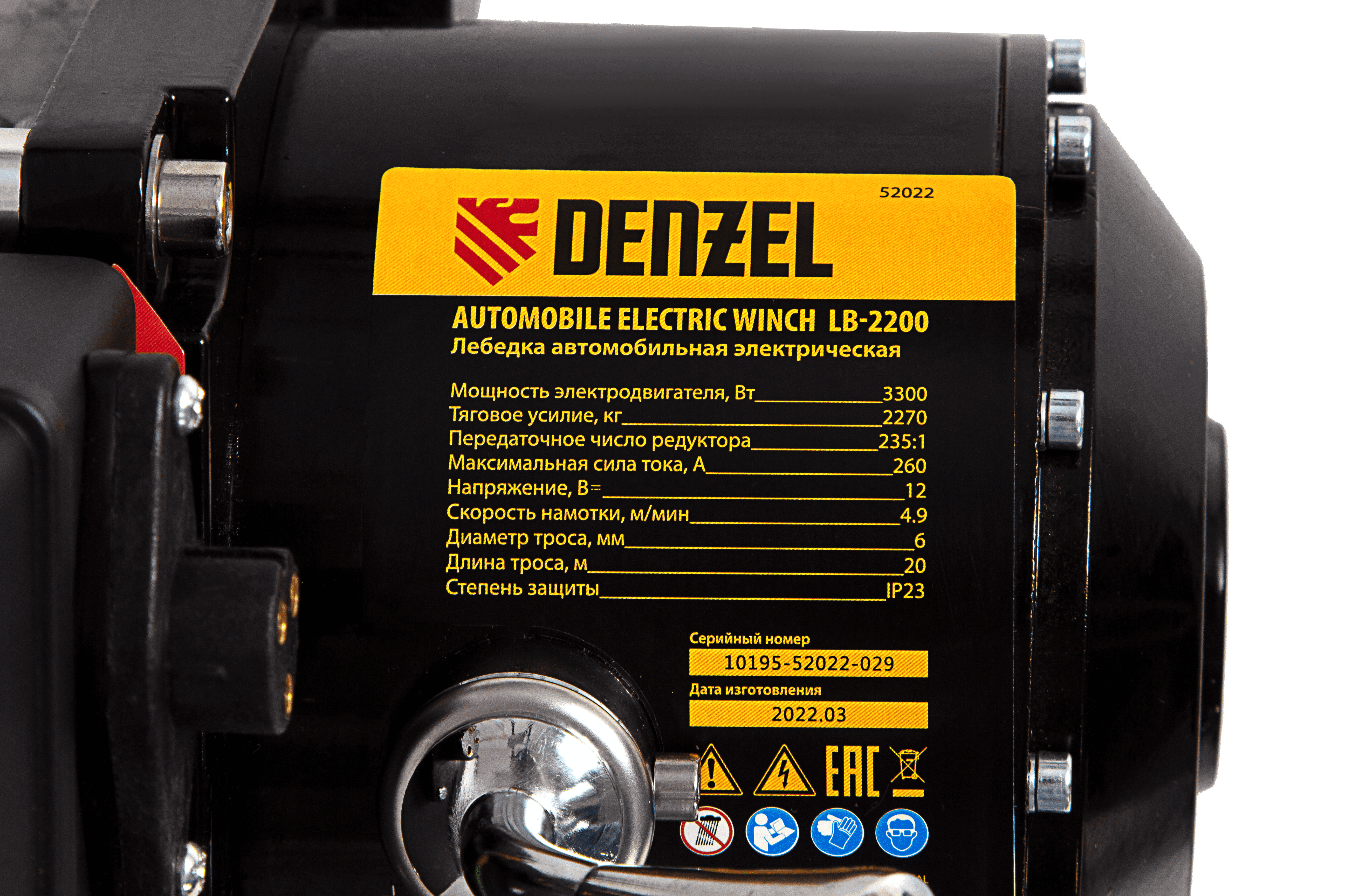 ПроизводителиЛебедка автомобильная электрическая LB- 2200, 2,2 т, 3,3 кВт, 12 В Denzel