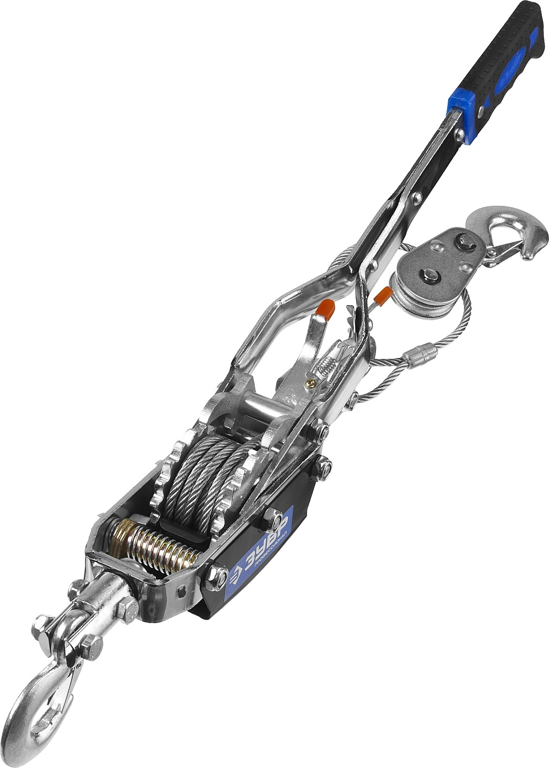 Крюки изготовлены из специальной углеродистой стали и закалены. Двойное цельнокованное храповое колесо и усиленная собачка обеспечивают надежную работу
