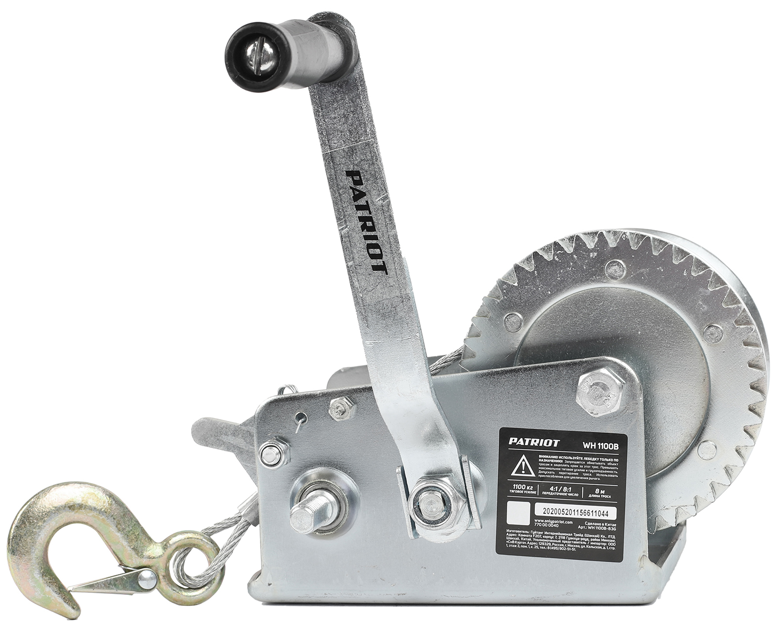 ПроизводителиЛебедка ручная барабанная WH 1100B (трос 8м Ø 5мм 1,1т крюк 1) PATRIOT
