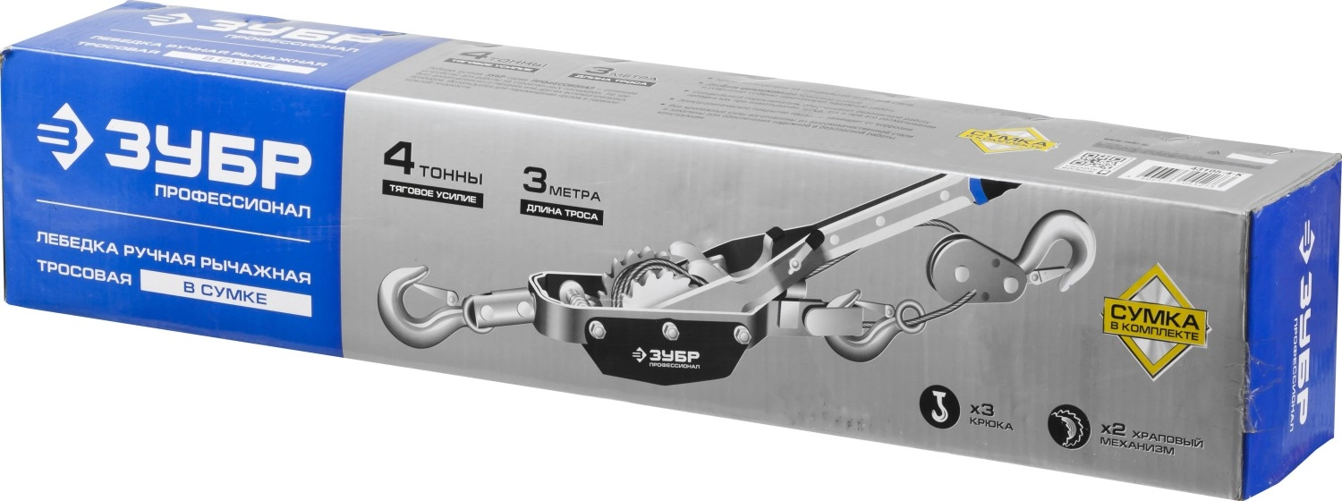 ПроизводителиЛебедка ручная рычажная "ПРОФЕССИОНАЛ", тросовая, 4 т, 3 м, в сумке (43105-4-K) ЗУБР