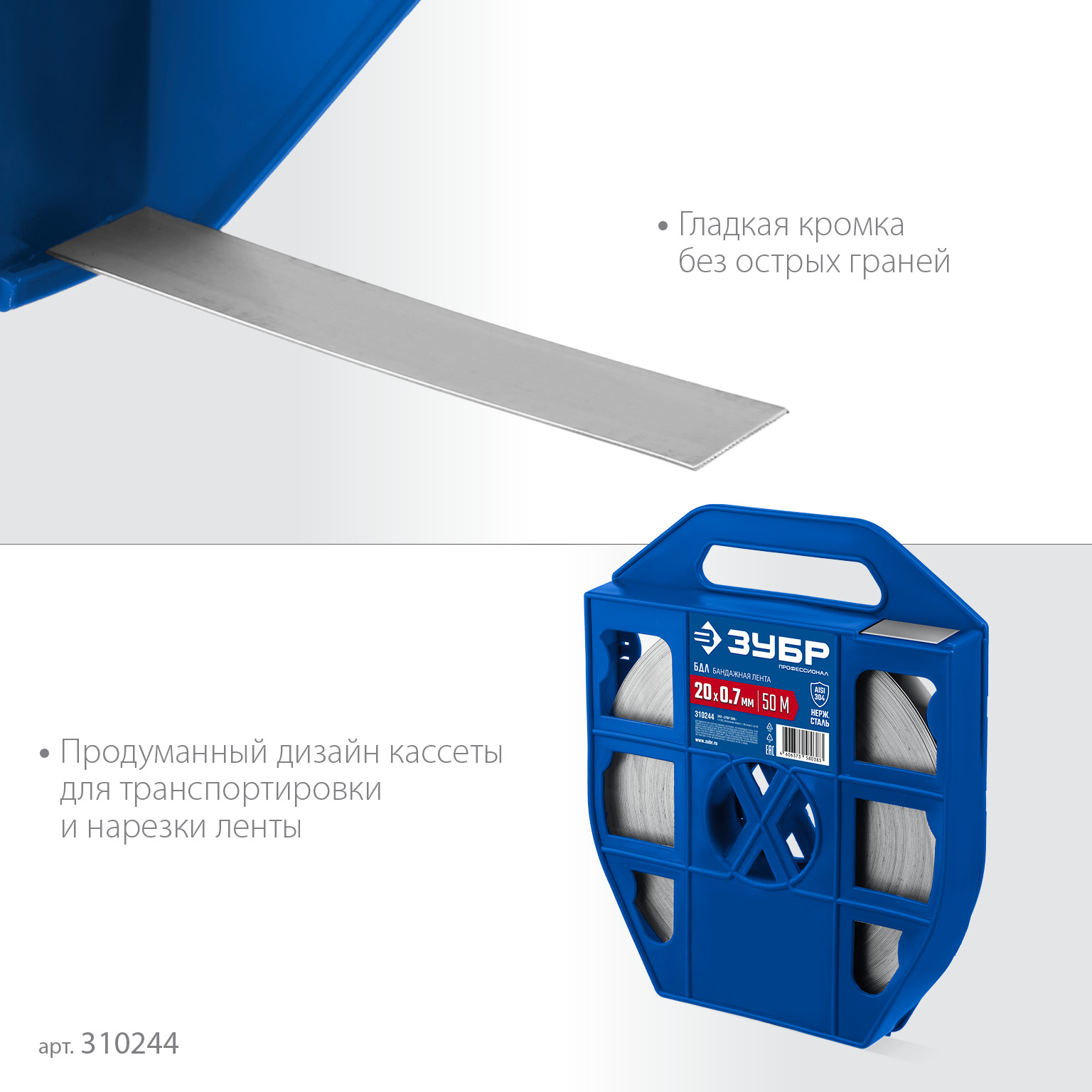 ПроизводителиЛента бандажная нержавещая 50 м, БДЛ 20х0.7мм, AISI 304, Профессионал (310244) ЗУБР
