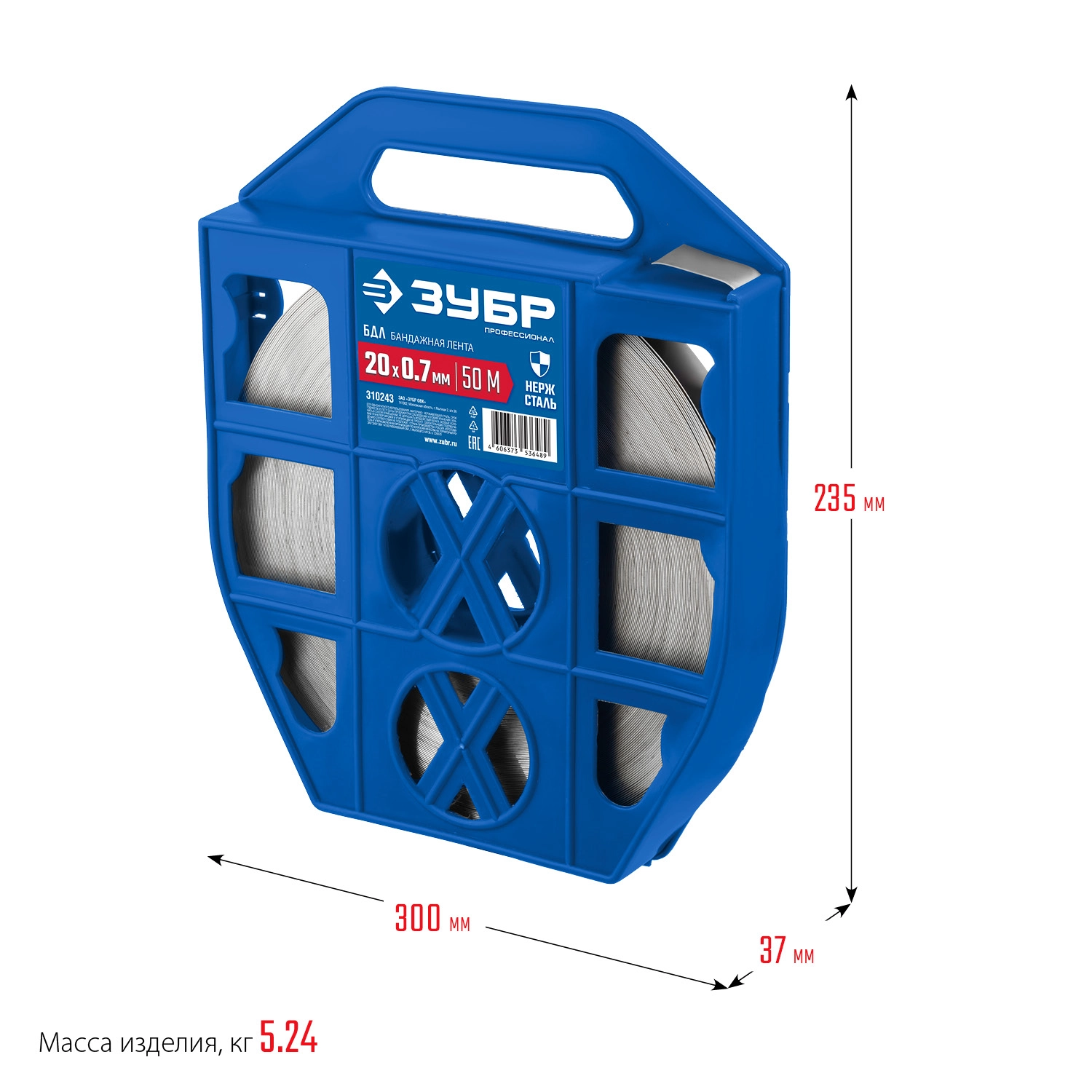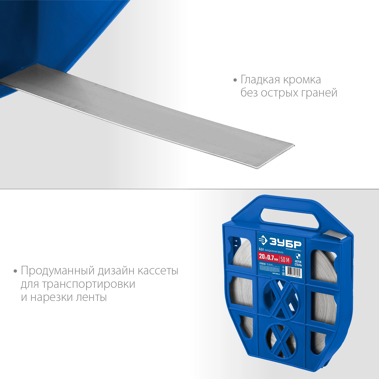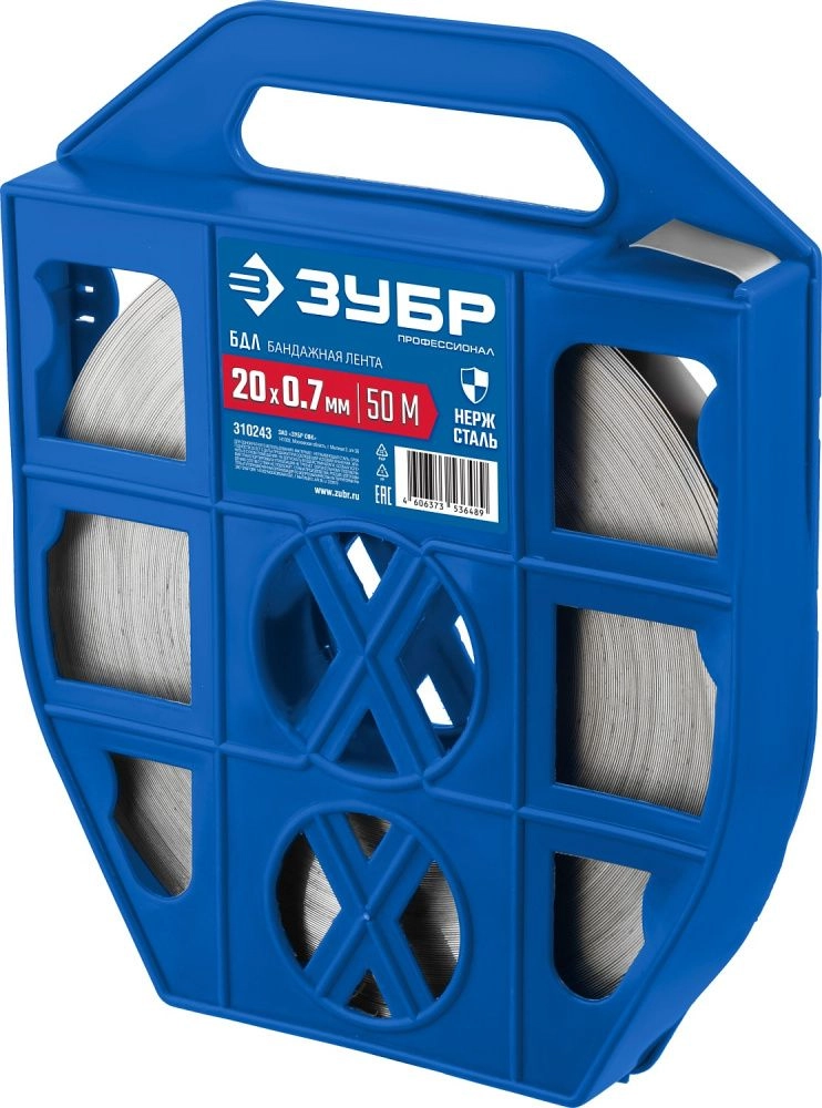 ПроизводителиЛента бандажная, нержавеющая, 20х0.7 мм, 50 метров, AISI 201 (310243) ЗУБР