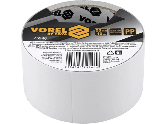 ПроизводителиЛента клейкая двухсторонняя на полипропиленовой основе 50ммх10м (75246) VOREL