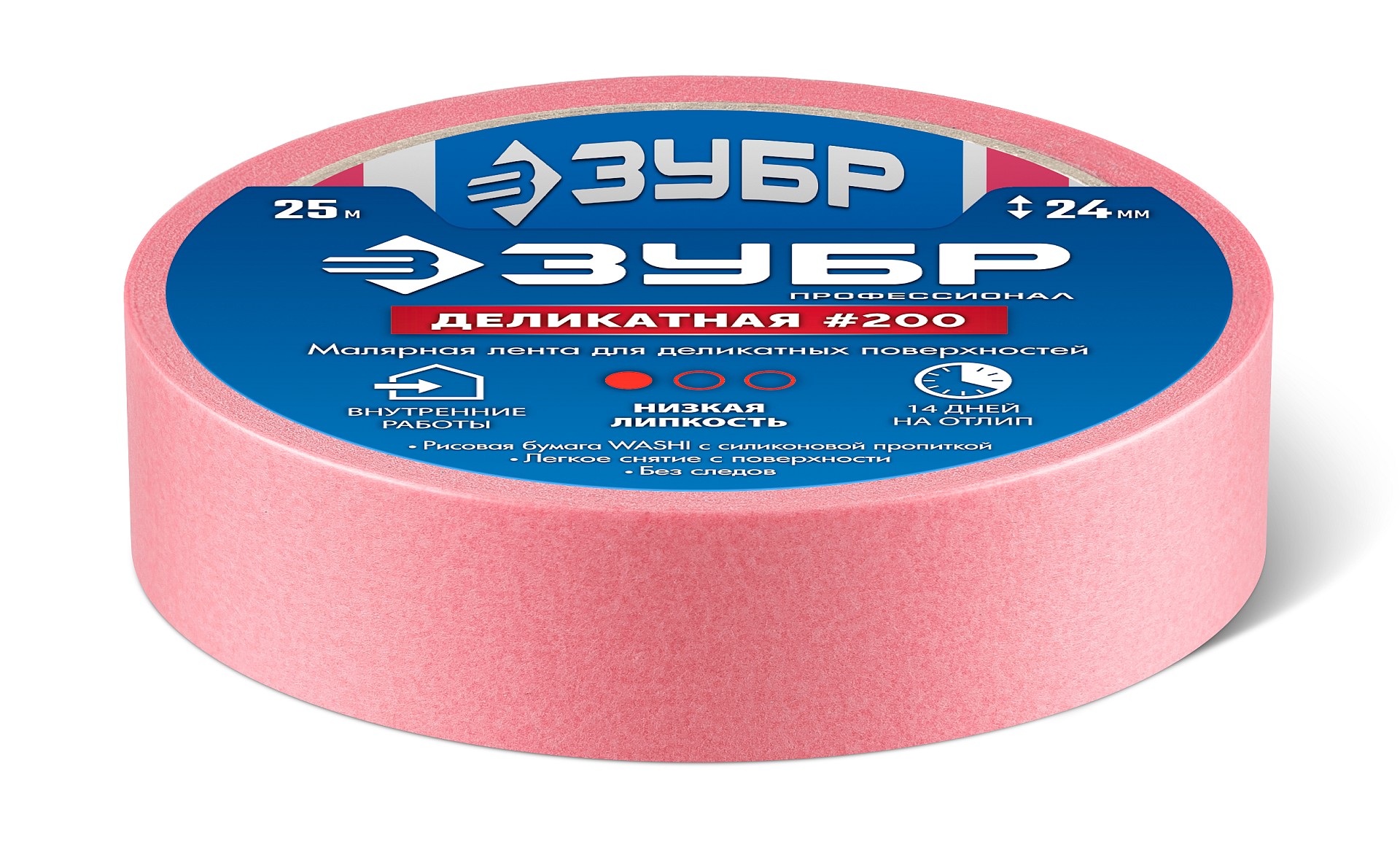 ПроизводителиЛента малярная №200 24мм х 25 м, для деликатных и недавно окрашенных поверхностей (12142-24) ЗУБР