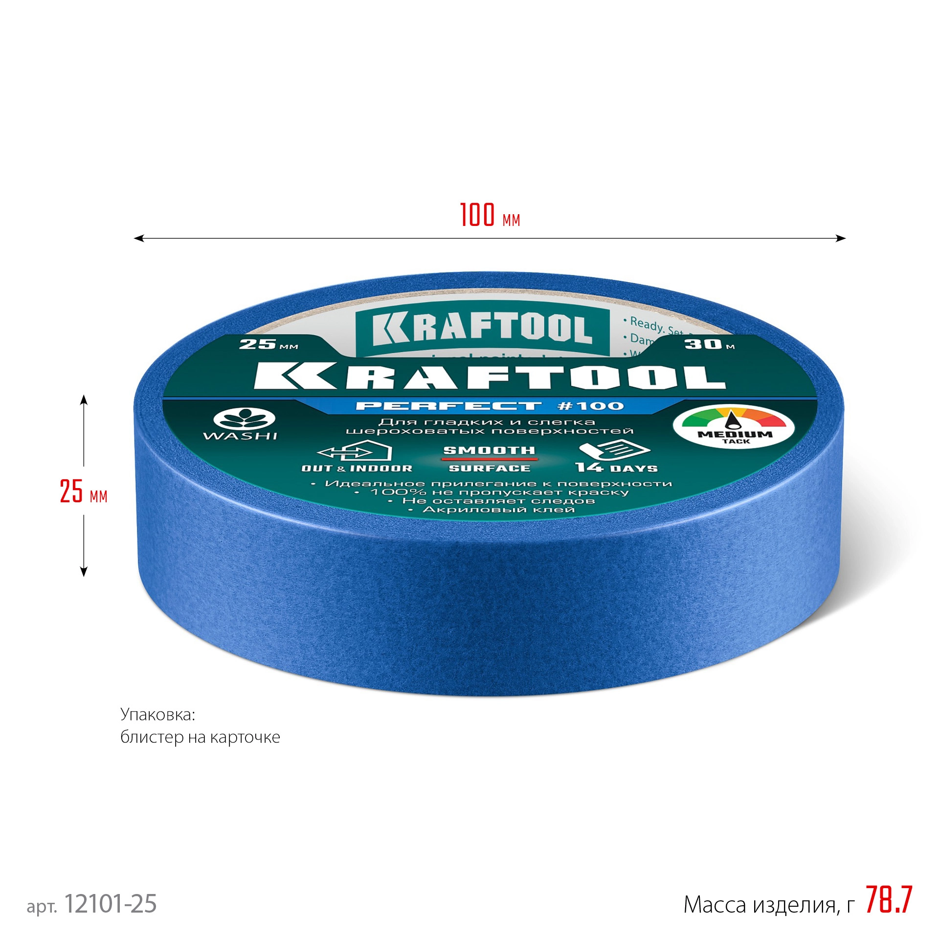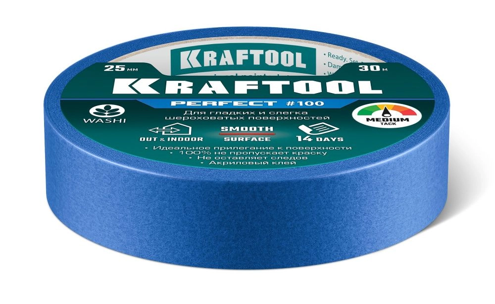 ПроизводителиЛента малярная бумажная 25мм/30м, для гладких и шероховатых поверхн., синяя (12101-25) KRAFTOOL