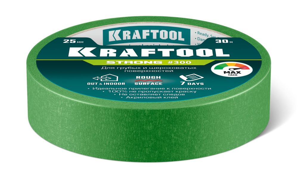 ПроизводителиЛента малярная бумажная 25мм/30м, для грубых и шероховатых поверхностей, зеленая (12103-25) KRAFTOOL