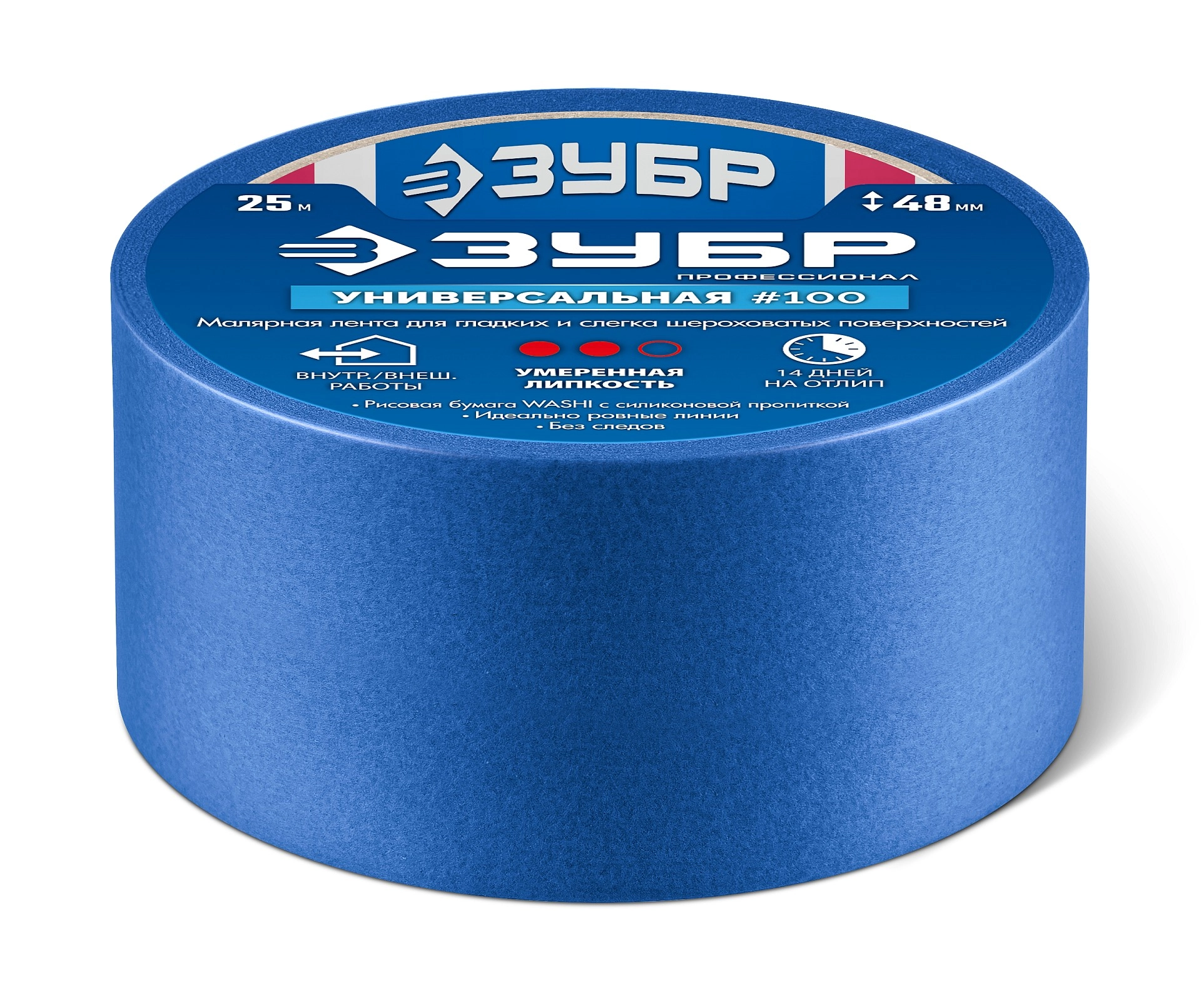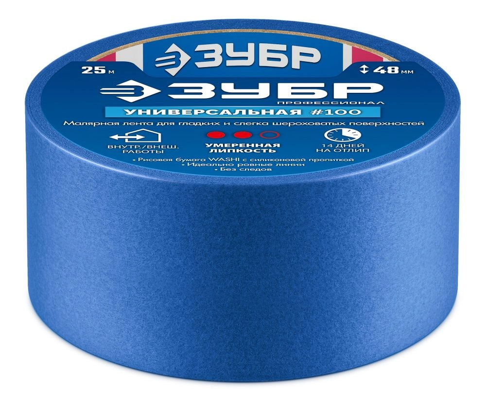 ПроизводителиЛента малярная бумажная 48мм/25м, для гладких и слегка шероховатых поверхн., синяя (12141-48) ЗУБР