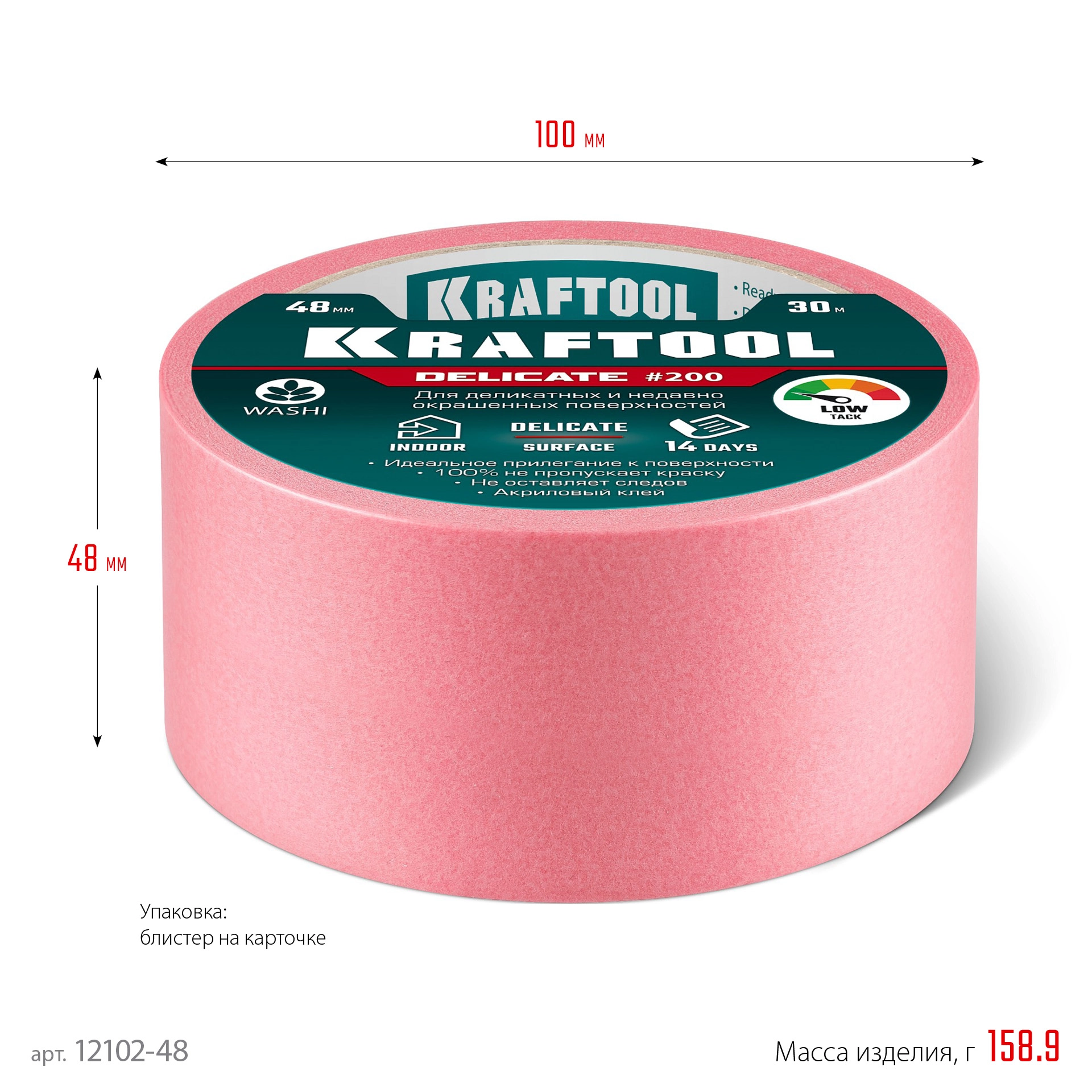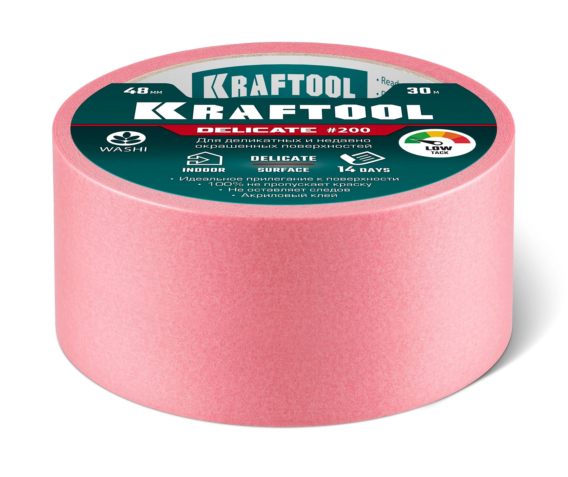 ПроизводителиЛента малярная бумажная 48мм/30м, для деликатных и недавно окраш. пов., розовая (12102-48) KRAFTOOL