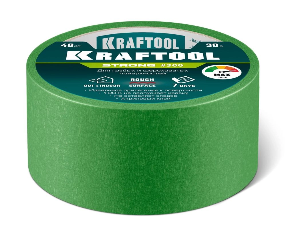 ПроизводителиЛента малярная бумажная 48мм/30м, для грубых и шероховатых поверхностей, зеленая (12103-48) KRAFTOOL