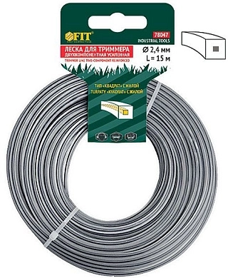 ПроизводителиЛеска для садовых триммеров усиленная, полиамидная жила, "Квадрат" 2,4 мм х 15 м (F_78047) FIT