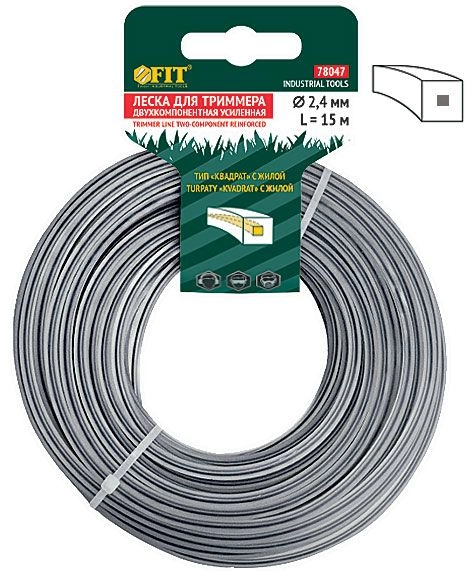 ПроизводителиЛеска для садовых триммеров усиленная, полиамидная жила, "Квадрат" 3,0 мм х 15 м (F_78048) FIT