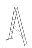 ПроизводителиЛестница алюм. двухсекционная шарнирная H2 (13 ступ. 368/618см 12,5кг) АЛЮМЕТ