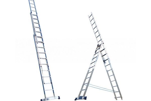 ПроизводителиЛестница алюм. трехсекционная с рем. безопасности усиленная HS3 (12 ступ. 339/843см 22,1кг) АЛЮМЕТ
