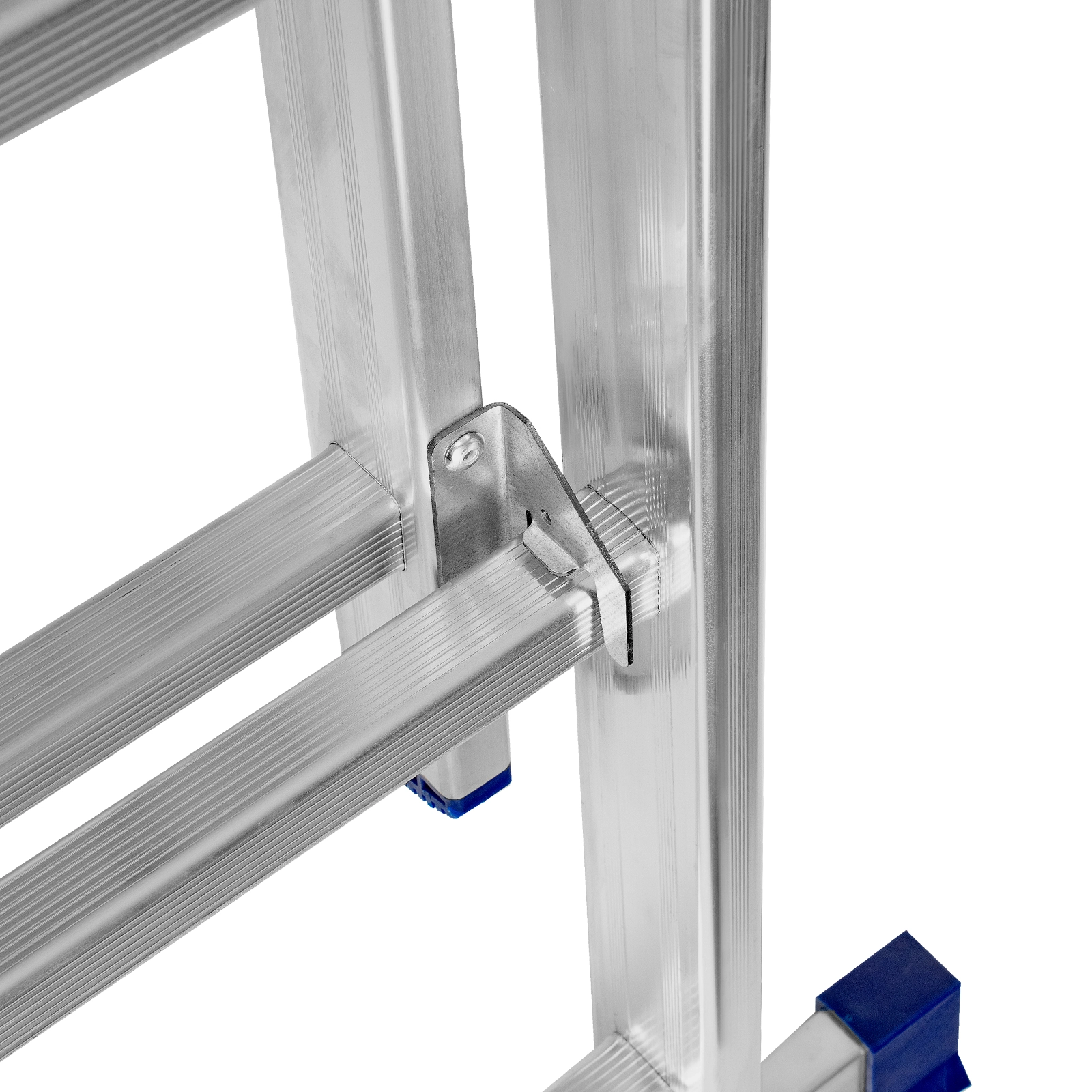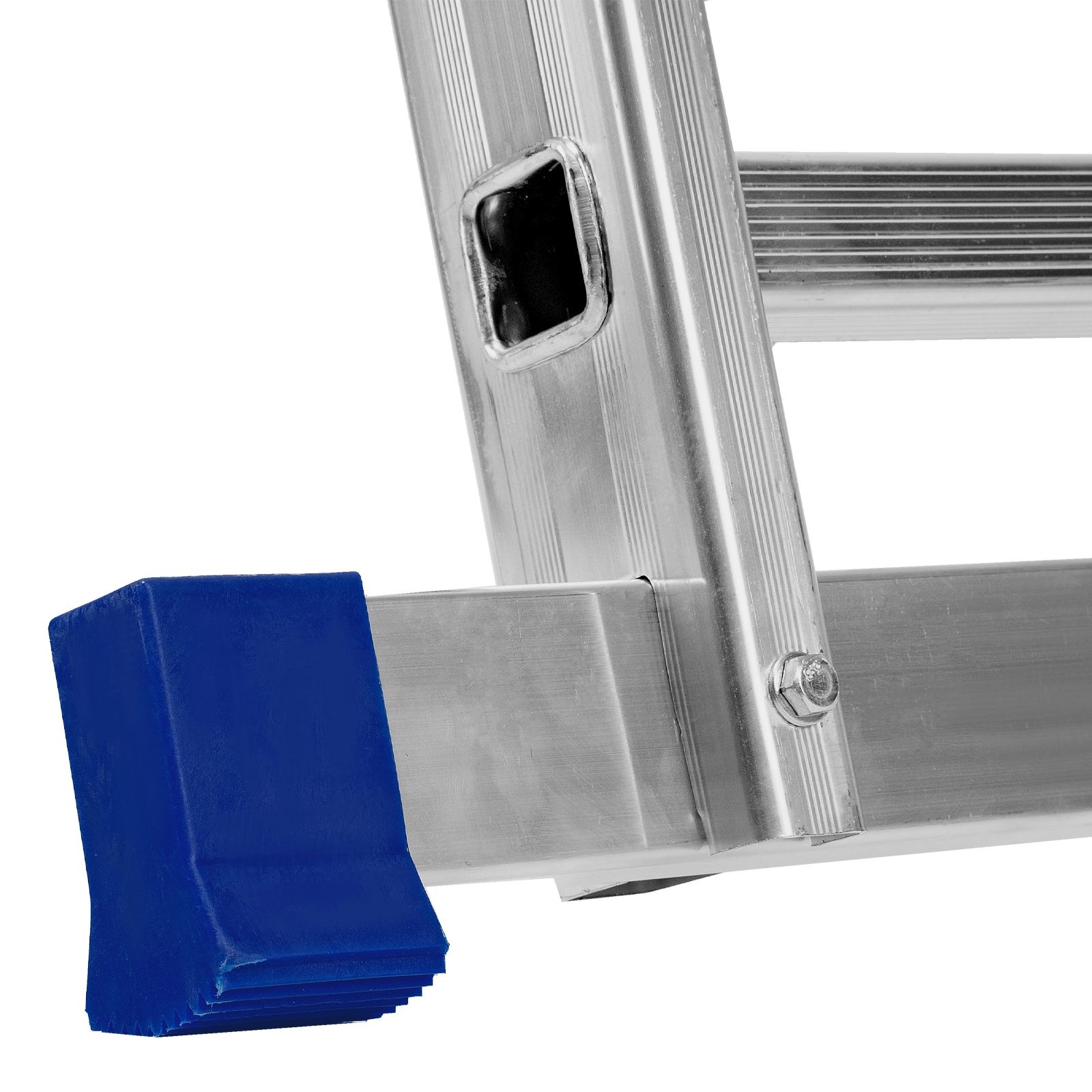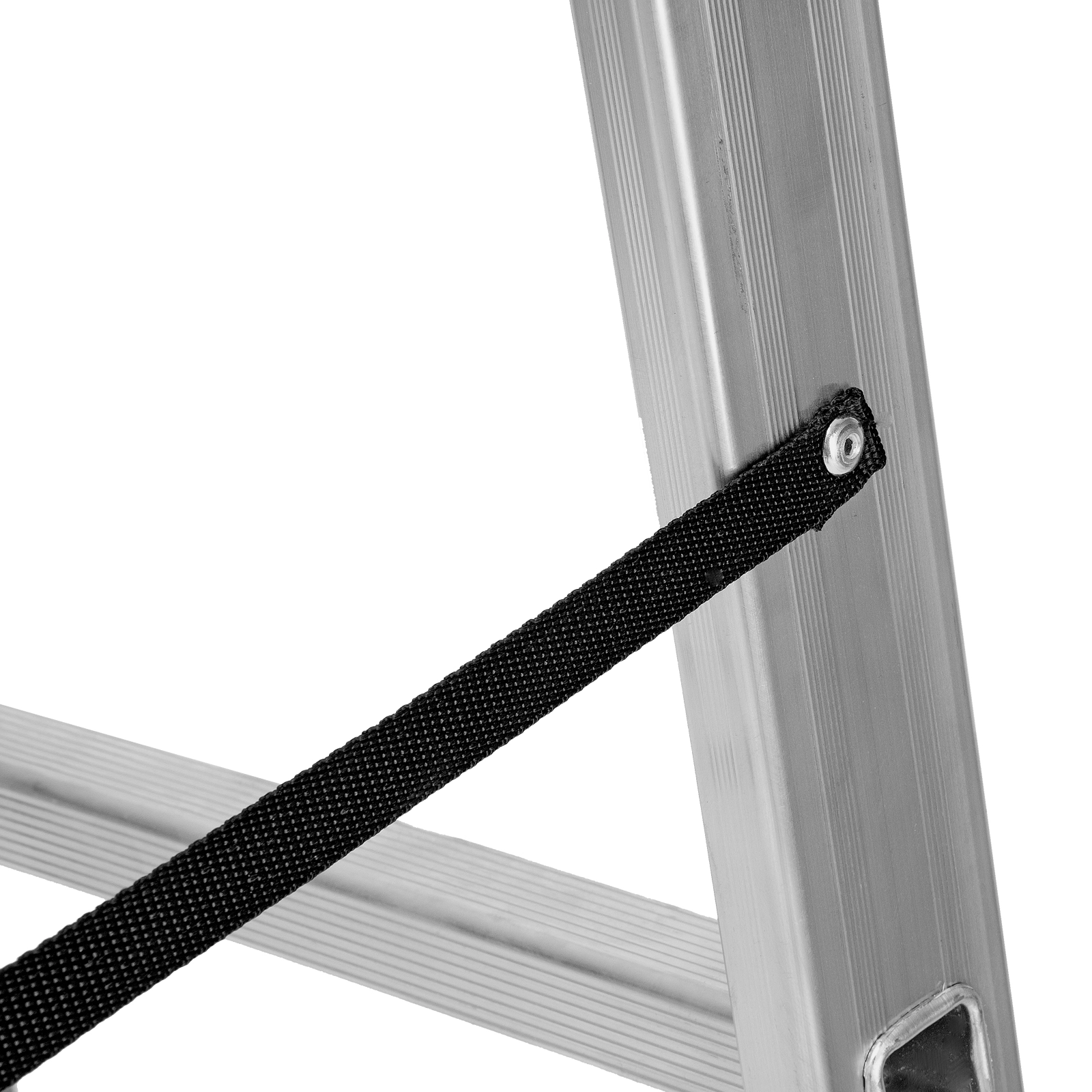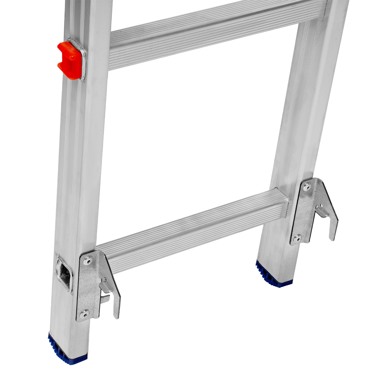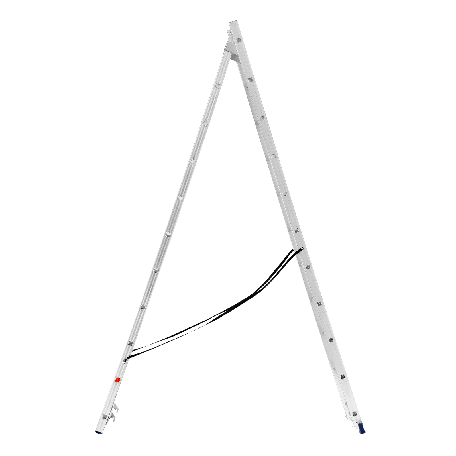 Благодаря съемному стабилизатору лестница устойчиво стоит на горизонтальной поверхности.