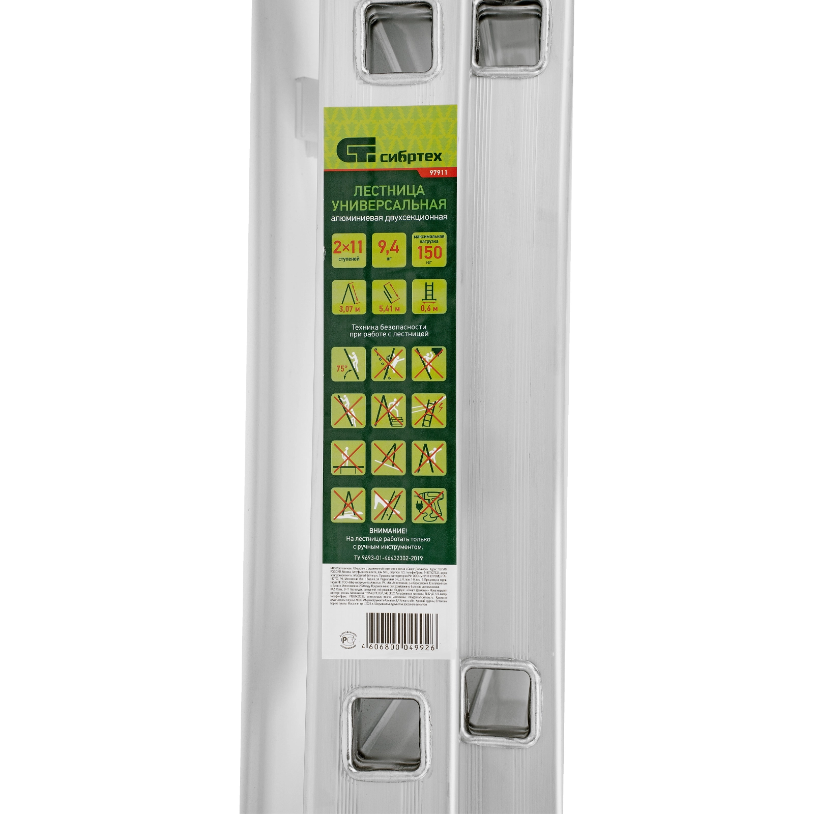 ПроизводителиЛестница алюмин., 2х11 ступ, двухсекц., 5060мм, слож.3070х395х110мм, (97911) СИБРТЕХ