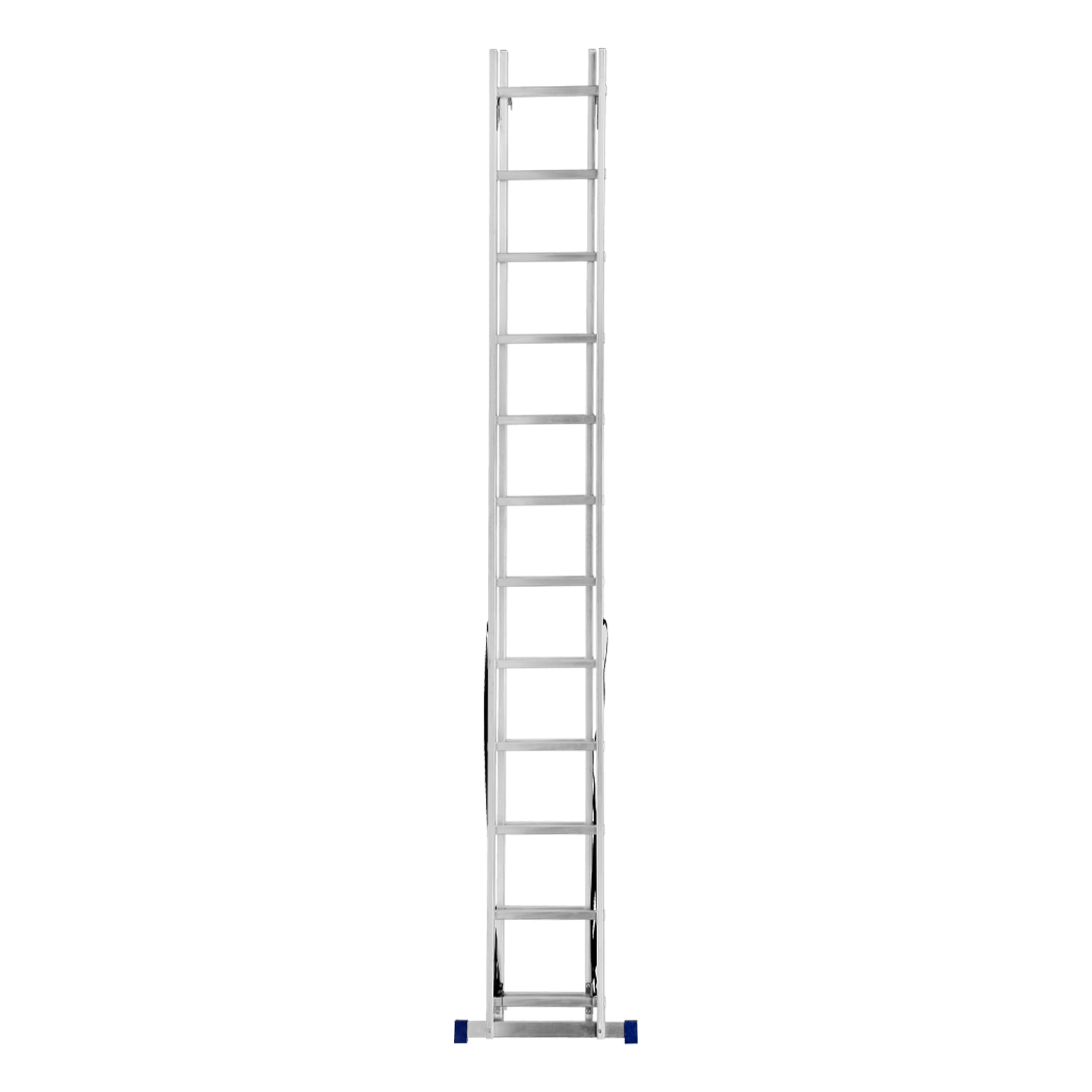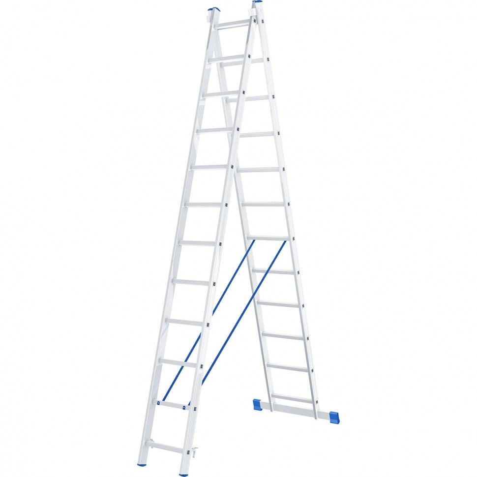 Алюминиевая двухсекционная лестница Сибртех 97912 состоит из 2-х секций по 12 ступеней каждая.