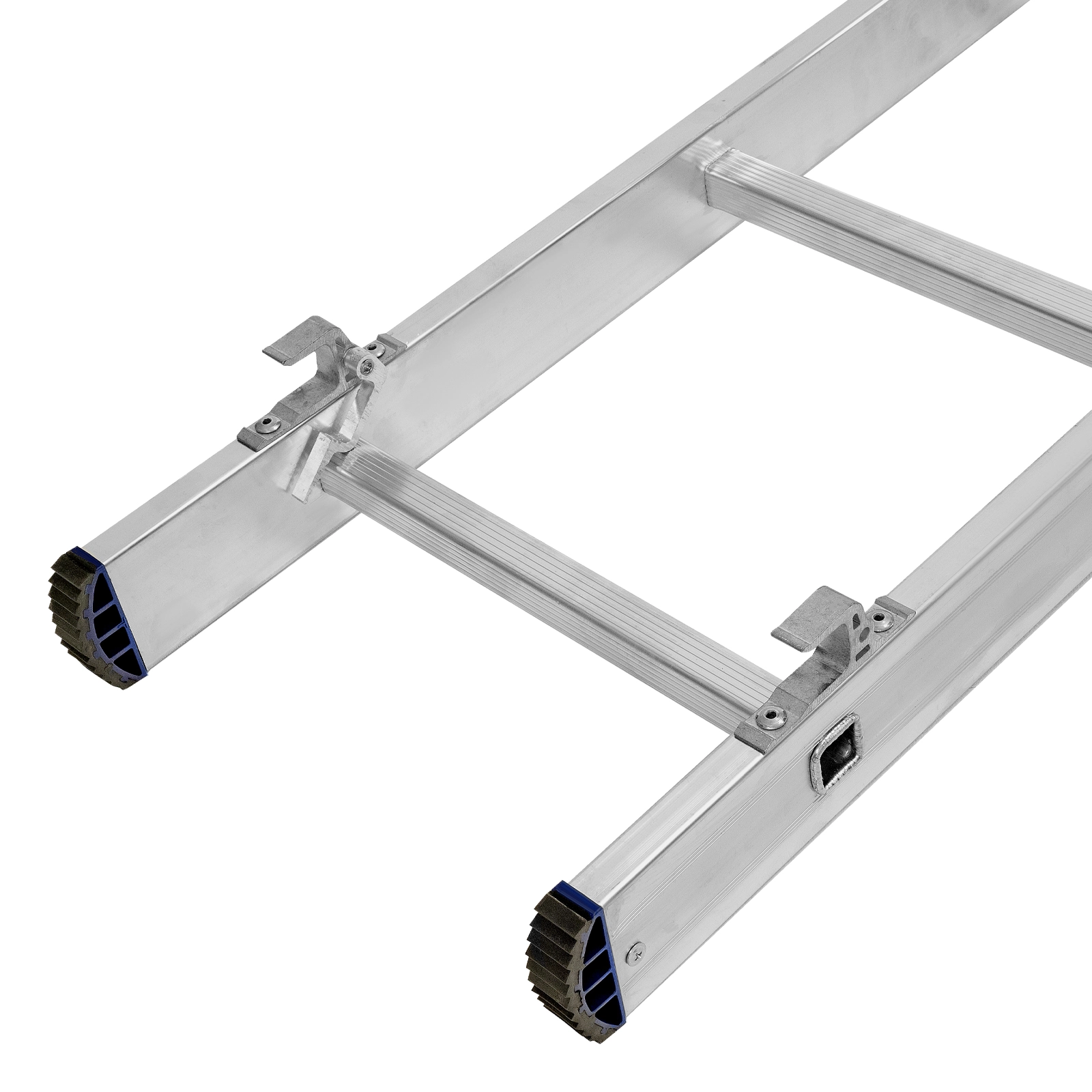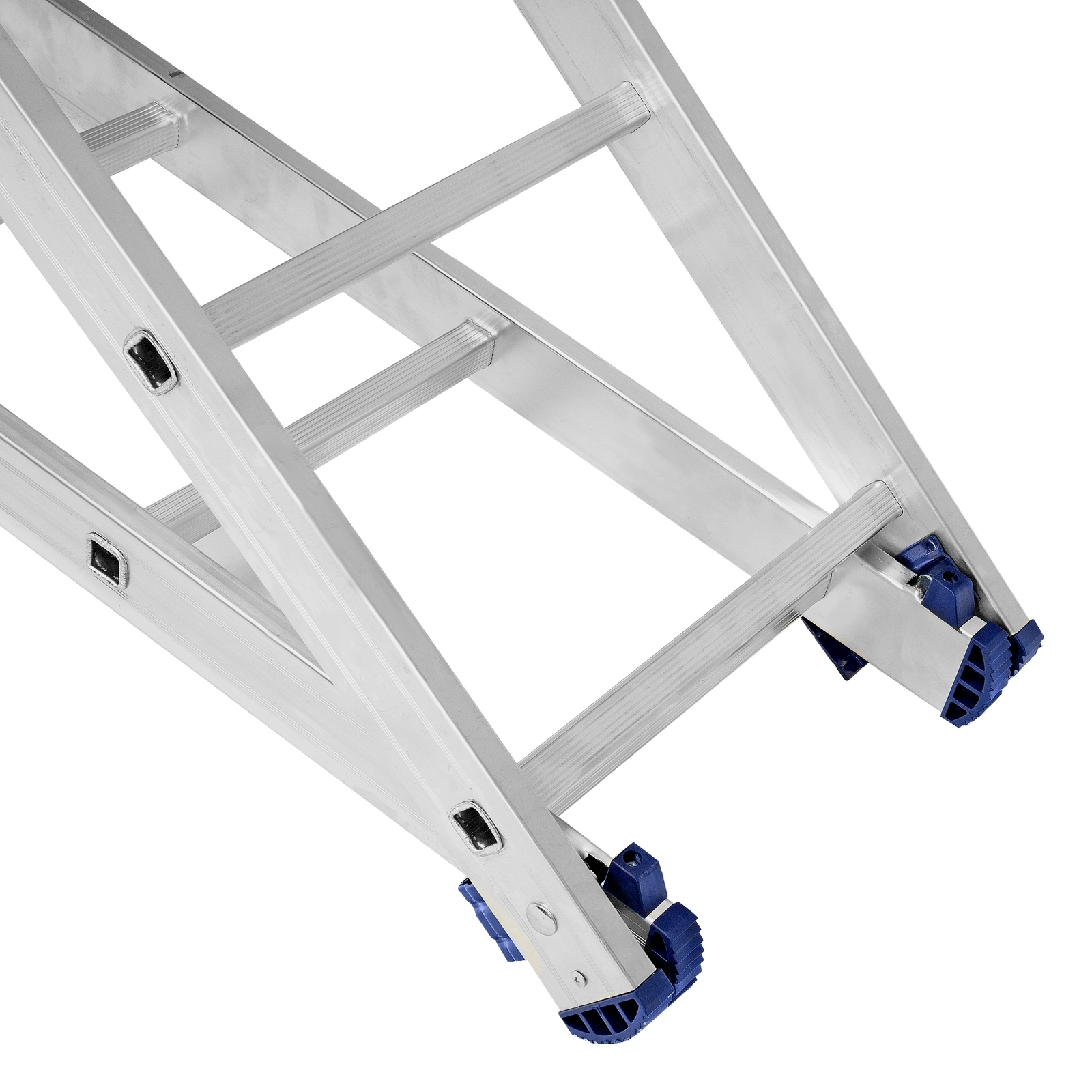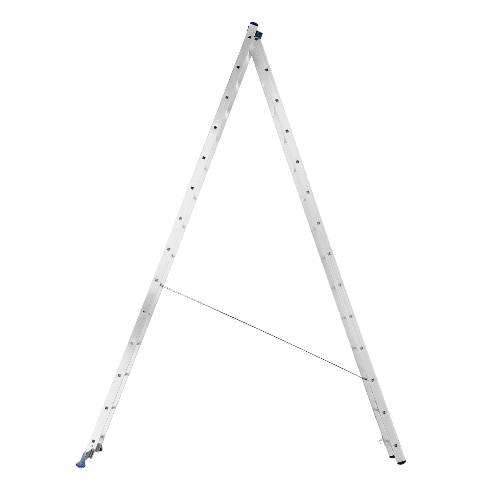 Благодаря съемному стабилизатору лестница устойчиво стоит на горизонтальной поверхности.