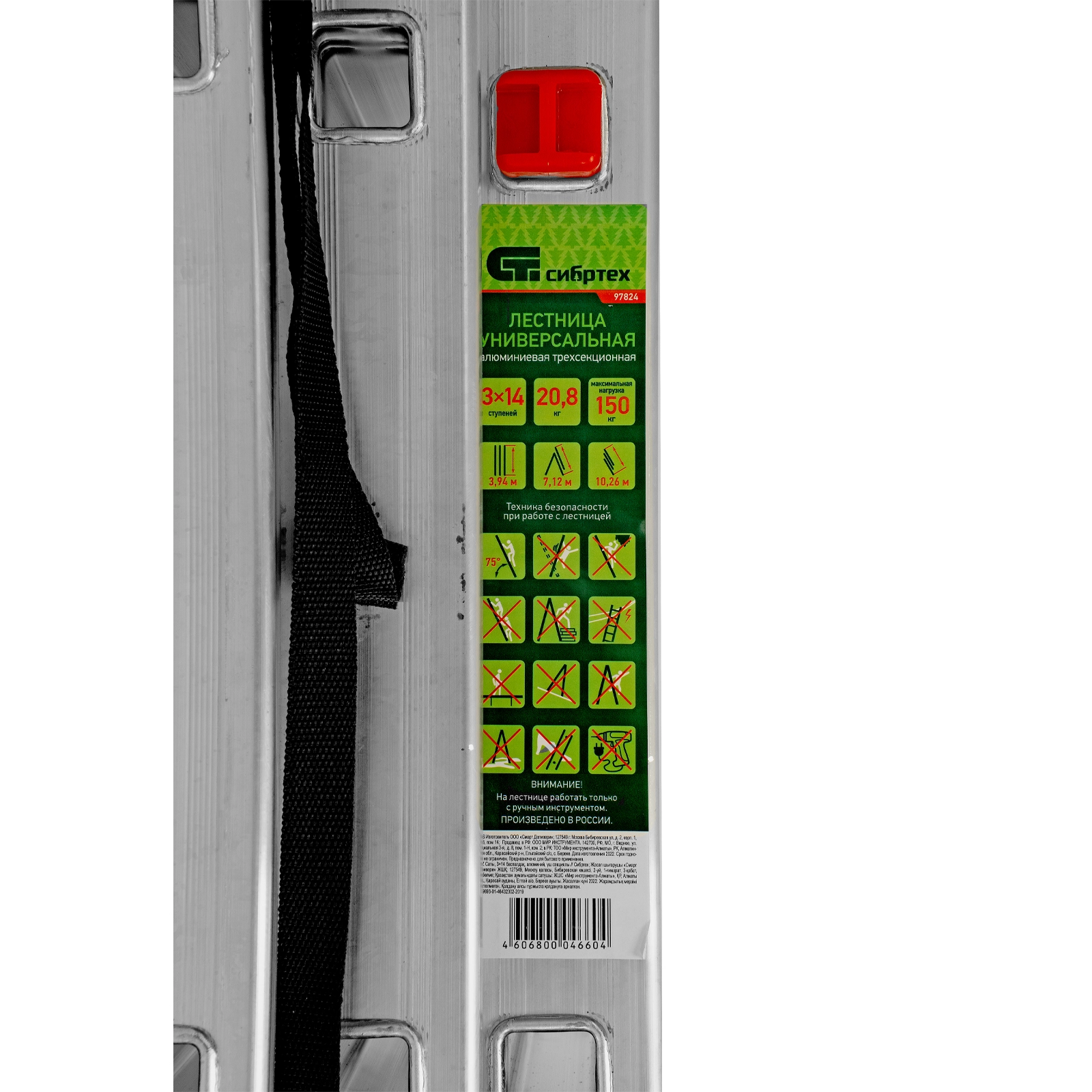 ПроизводителиЛестница алюмин., 3х14 ступ, трехсекц., 7010мм, слож.3967х445х180мм, (97824) СИБРТЕХ