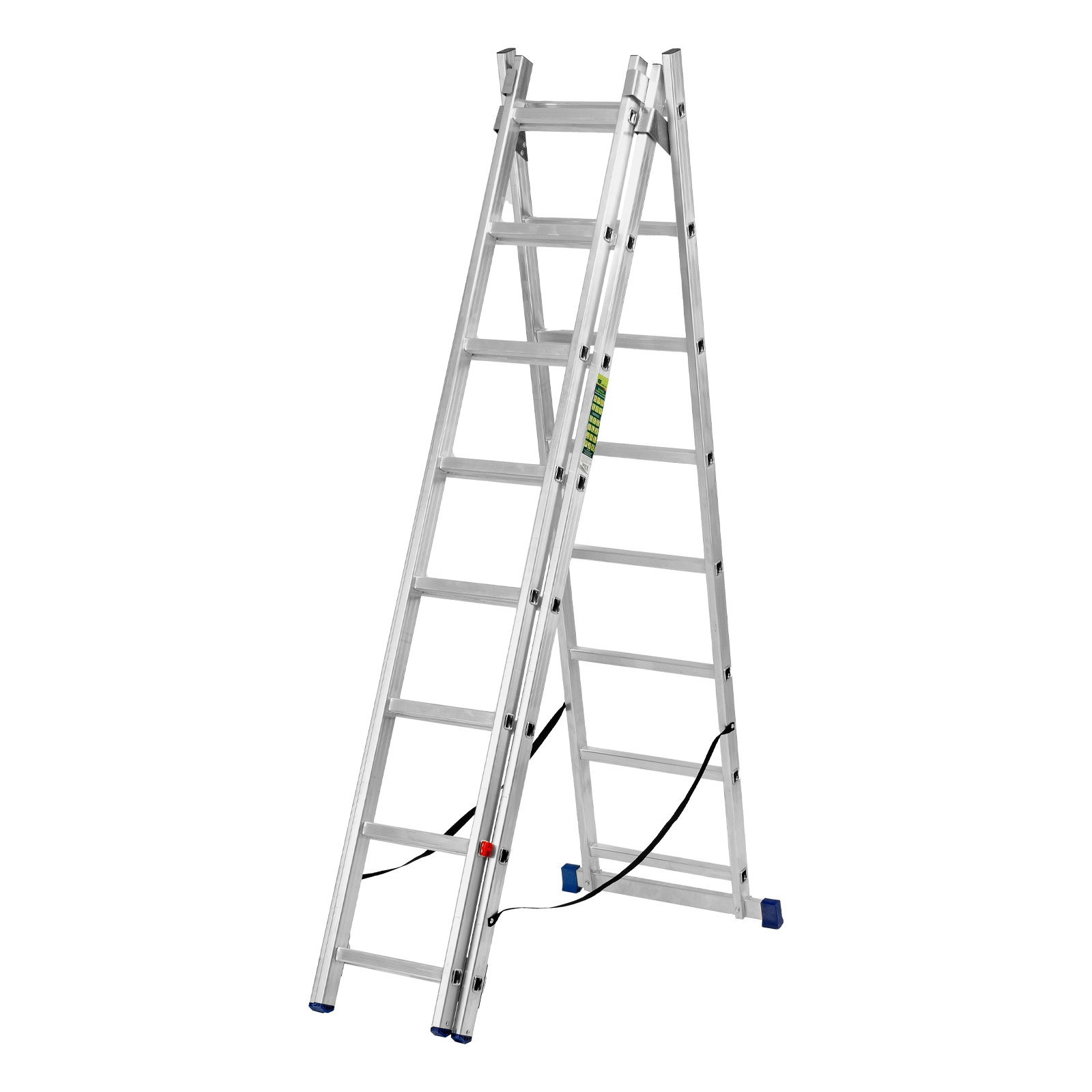 Многофункциональность — лестница может использоваться в 3-х различных вариациях — в качестве стремянки (с двумя расставленными и одной выдвинутой вверх секцией), двухсторонней стремянки (две секции расставлены, третья демонтирована) и приставной лестницы.