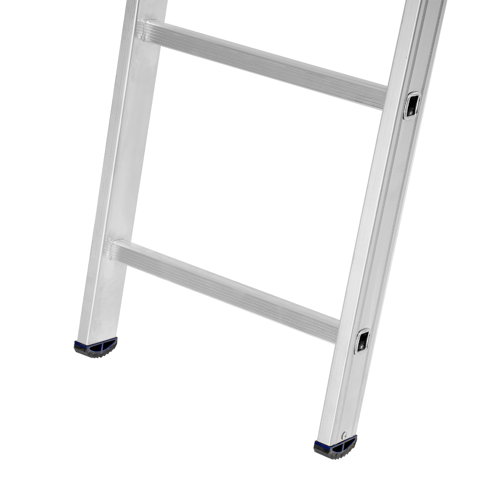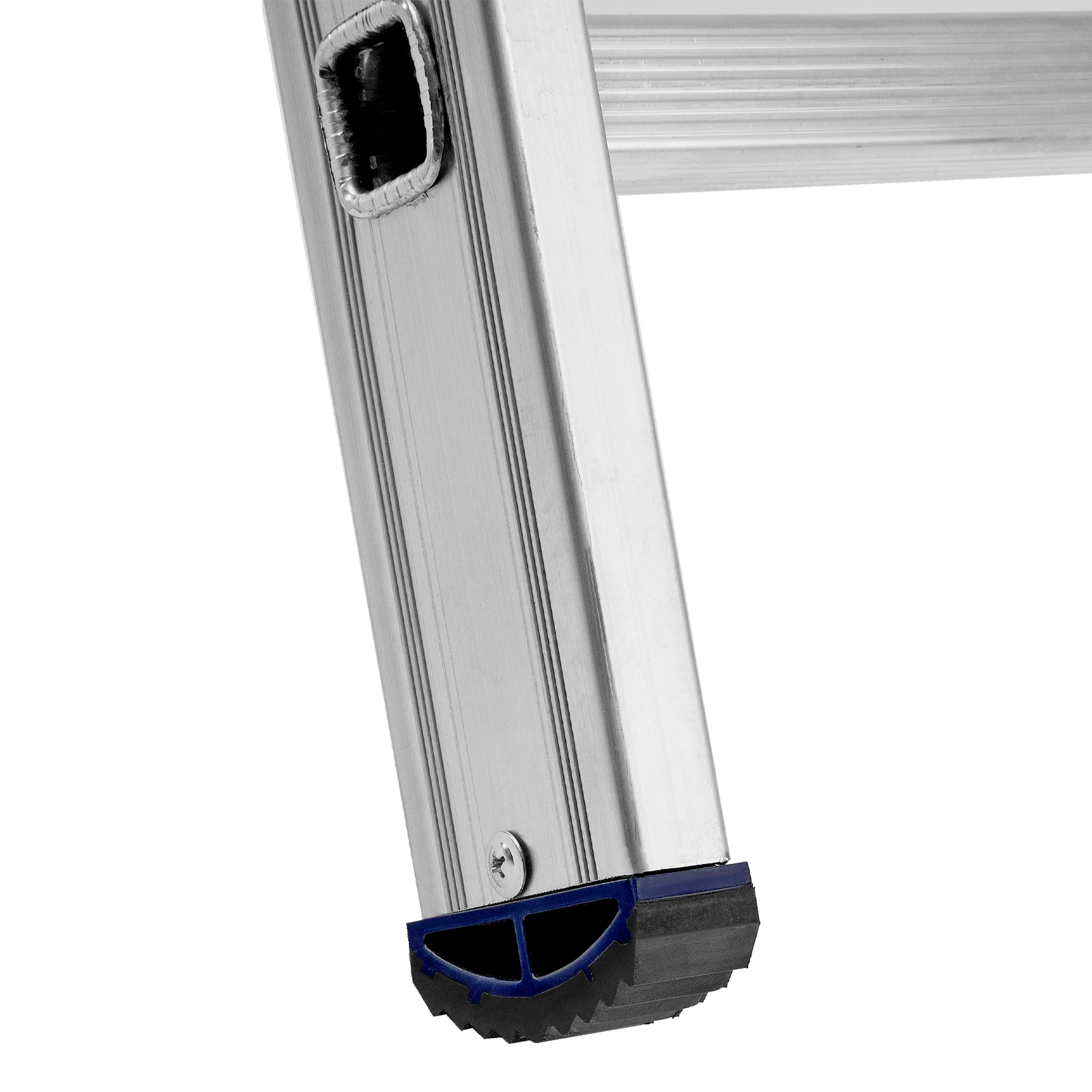 Пластиковые заглушки с рифлением защищают напольное покрытие от царапин и обеспечивают устойчивое положение лестницы.
