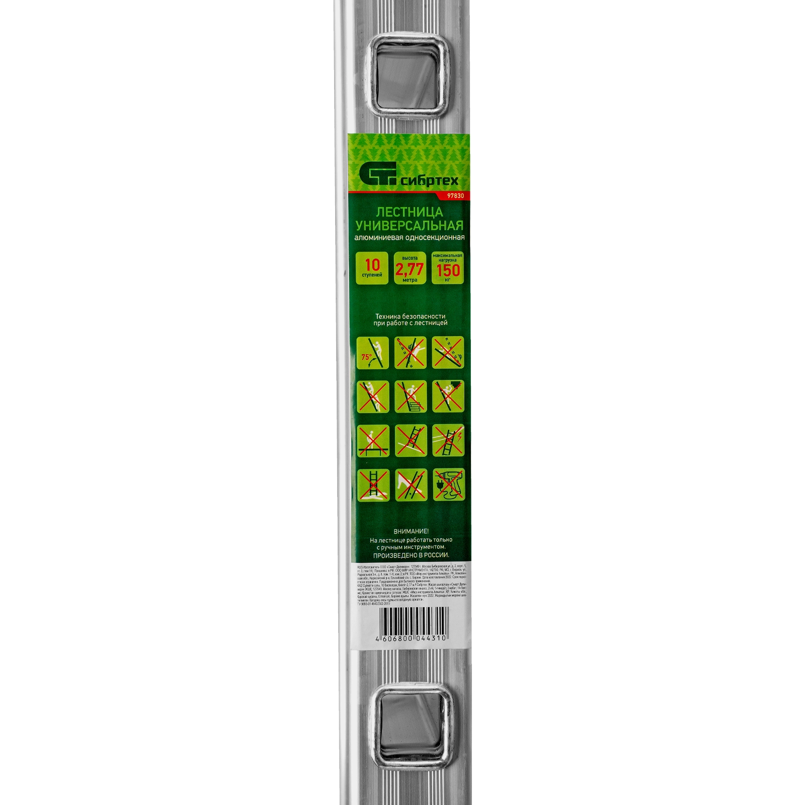 ПроизводителиЛестница алюмин. приставная, 10 ступ, 2797мм, слож.2797х340х54мм (97830) СИБРТЕХ