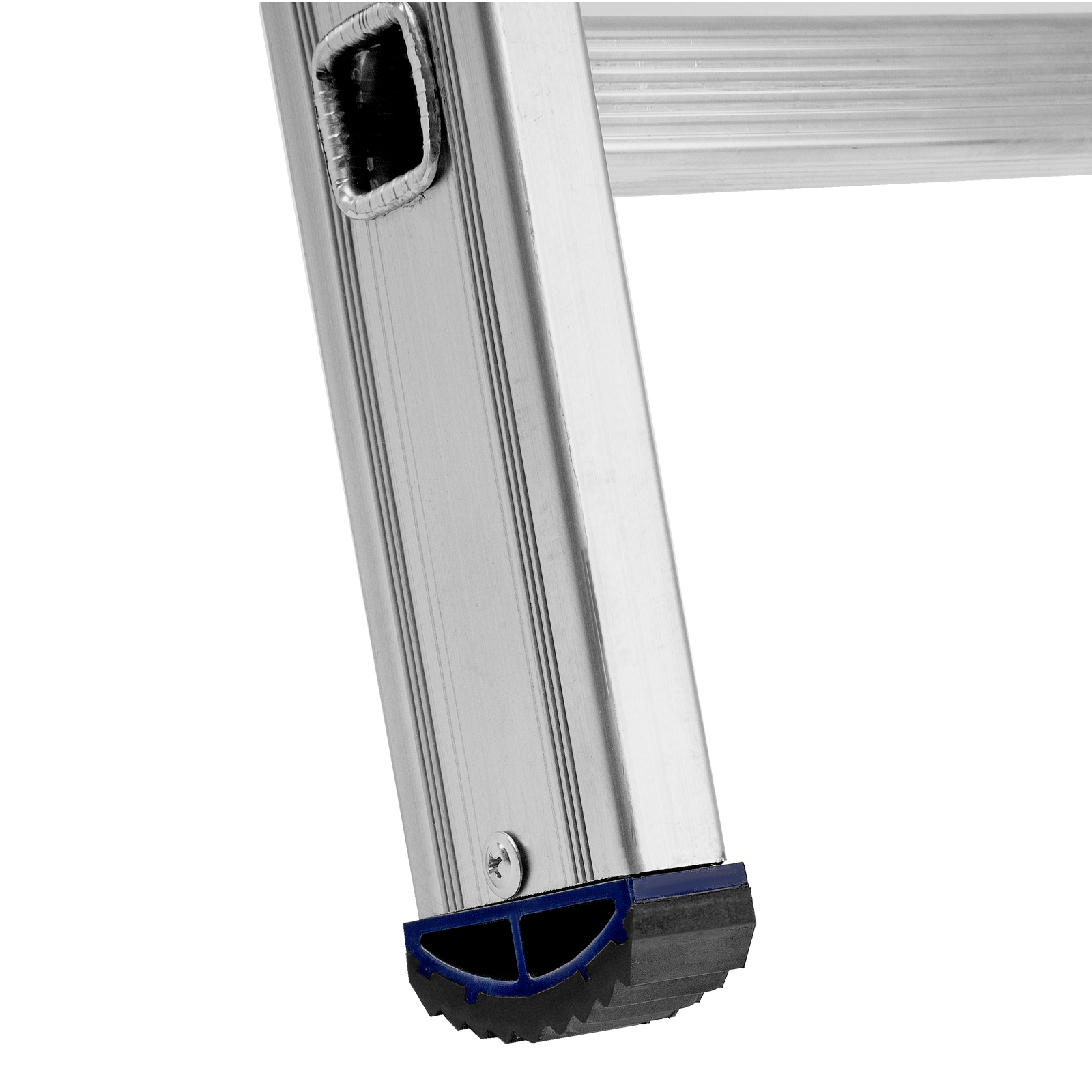 Пластиковые заглушки с рифлением защищают напольное покрытие от царапин и обеспечивают устойчивое положение лестницы.