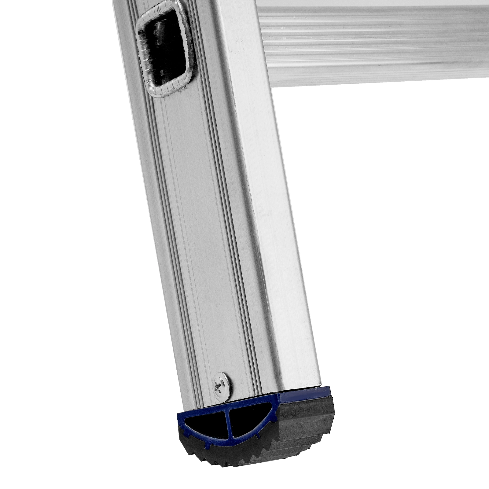 Пластиковые заглушки с рифлением защищают напольное покрытие от царапин и обеспечивают устойчивое положение лестницы.