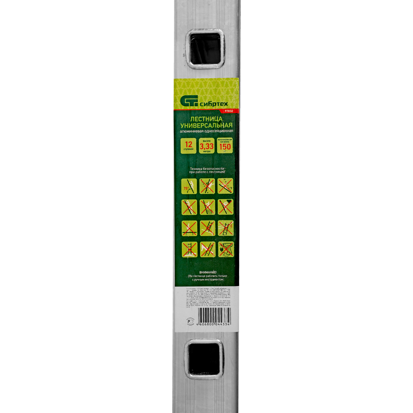 ПроизводителиЛестница алюмин. приставная, 12 ступ, 3357мм, слож.3357х400х60мм, (97832) СИБРТЕХ