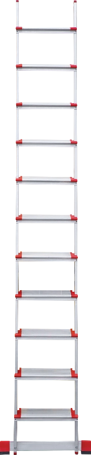 Профессиональная прочная приставная лестница для интенсивного использования. Широкие ступени 130 мм увеличивают время работы на высоте.