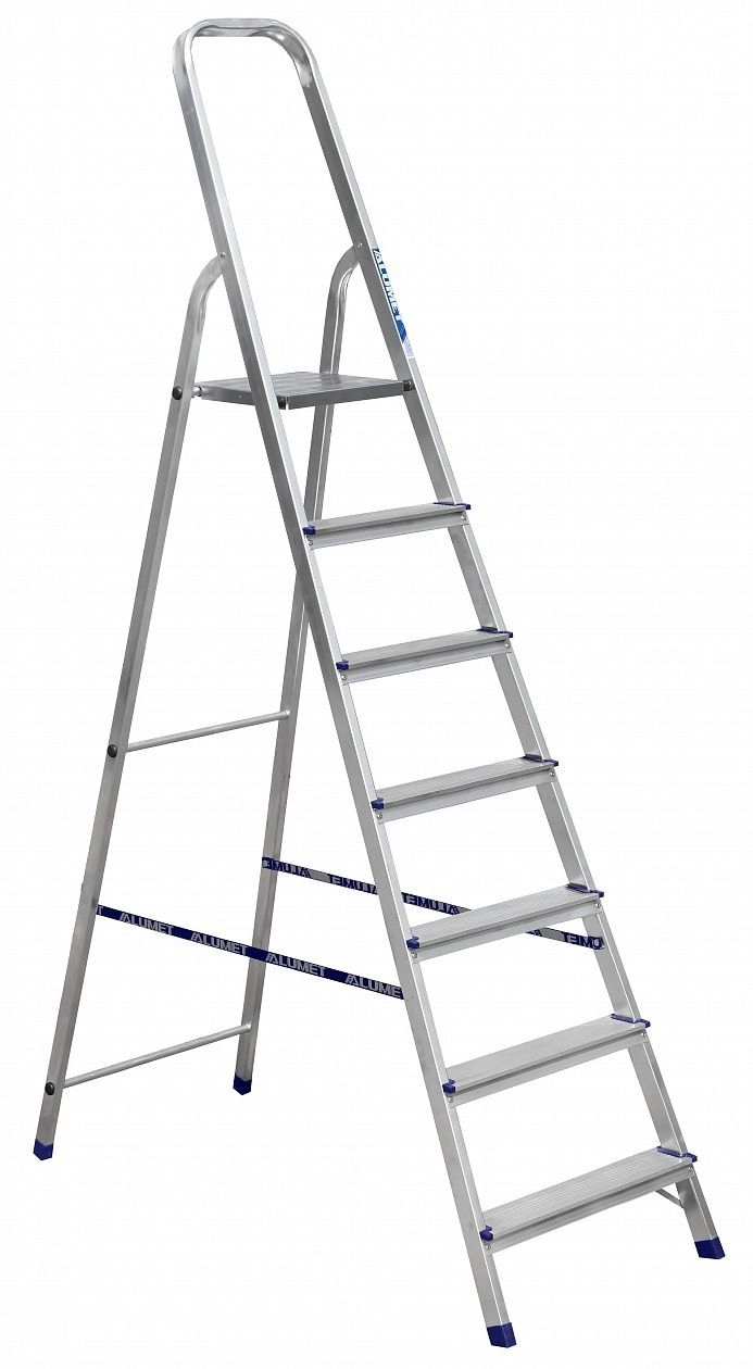 ПроизводителиЛестница-стремянка алюм. одностор. бытовая АМ (7 ступ. 145/221см, 5.3кг) АЛЮМЕТ