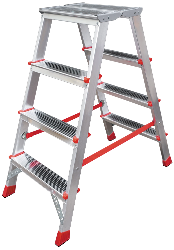 ПроизводителиЛестница-стремянка алюм. двухсторон. проф. с площад. NV3121 (2х4 ступ. 89/96см, 5.1кг) Новая высота