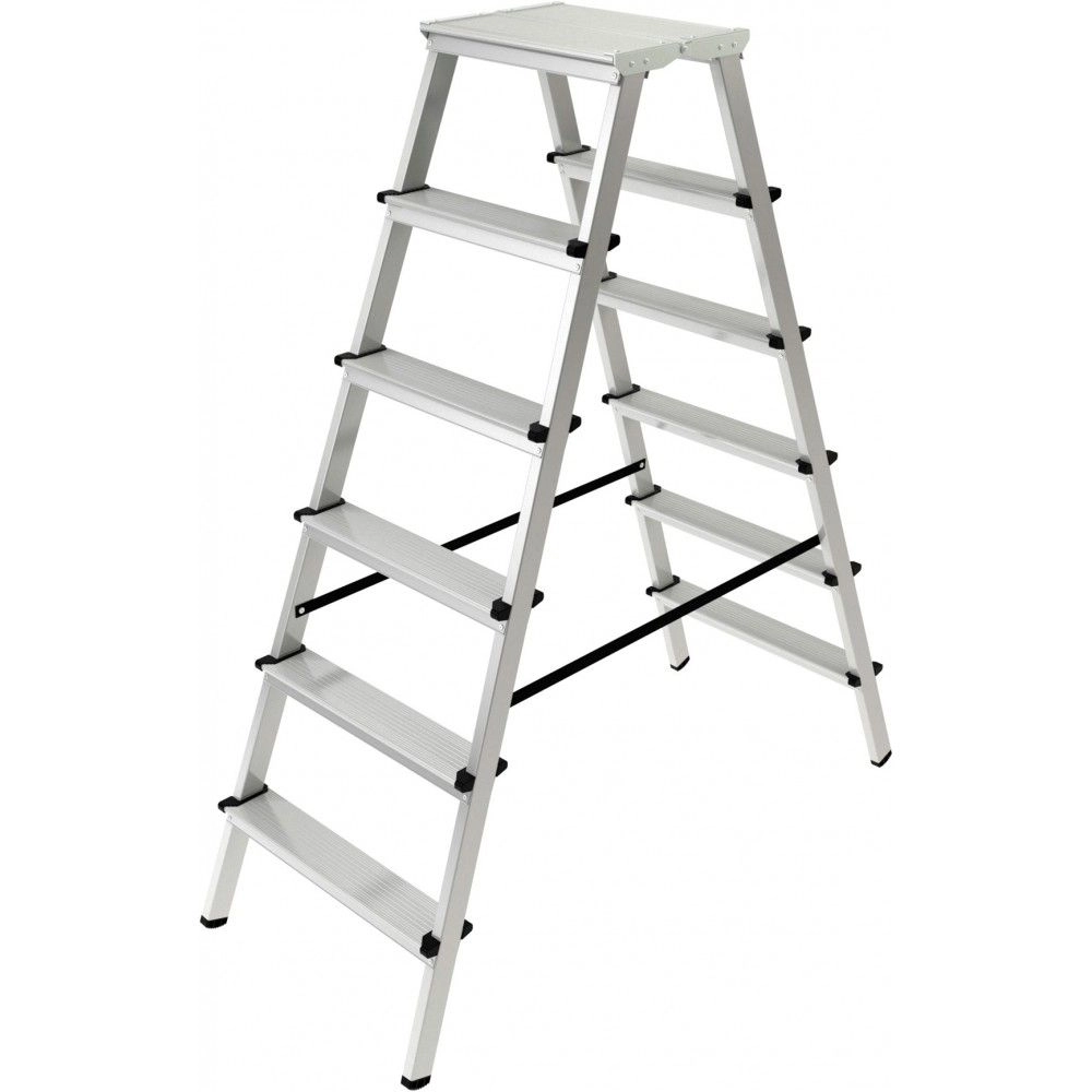ПроизводителиЛестница-стремянка алюм. двухсторон. с площадкой NV2120 (6 ступ. 132см, 5.7кг) Новая высота