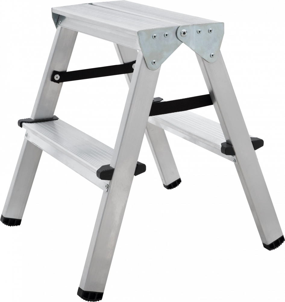 ПроизводителиЛестница-стремянка алюм. двухсторон., серия NV1120 (2 ступ. 43/47 см, 1.8 кг) (1120202) Новая высота