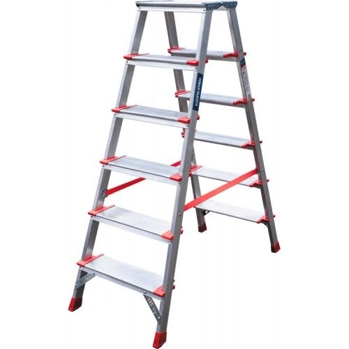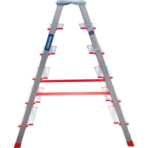 ПроизводителиЛестница-стремянка алюм. индустр. двухстор. с рифл.ступ. NV5120 (6 ступ. 132см 8кг) Новая высота