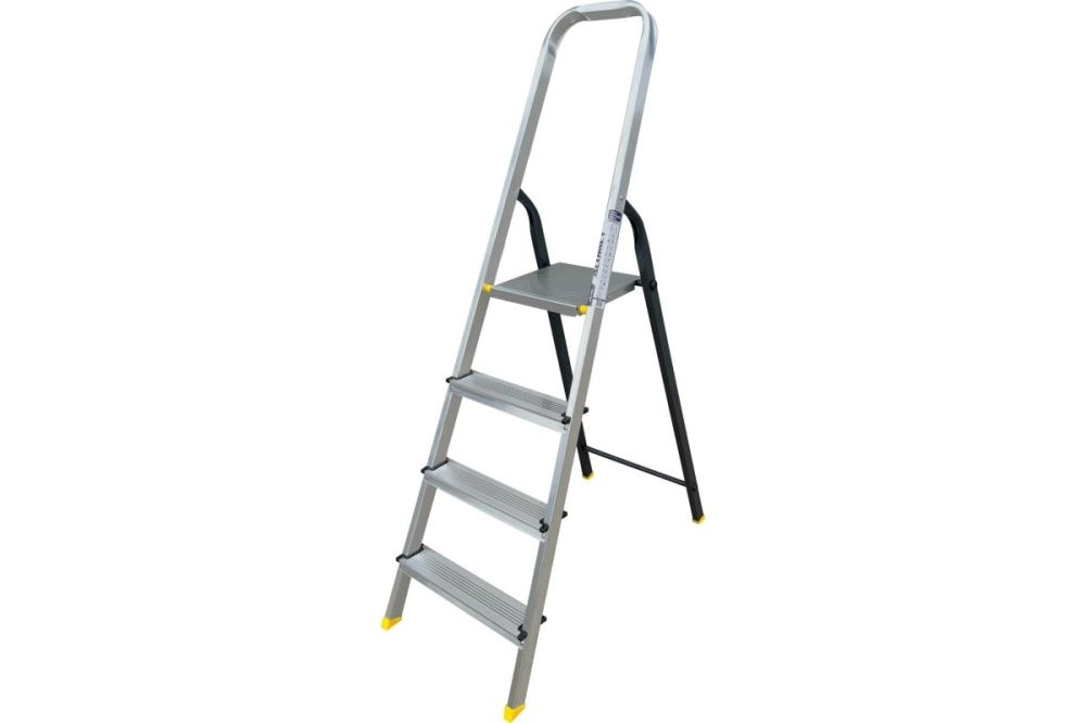 ПроизводителиЛестница-стремянка алюм. одностор. усиленная АМS (4 ступ. 82/154см, 3.8кг) АЛЮМЕТ