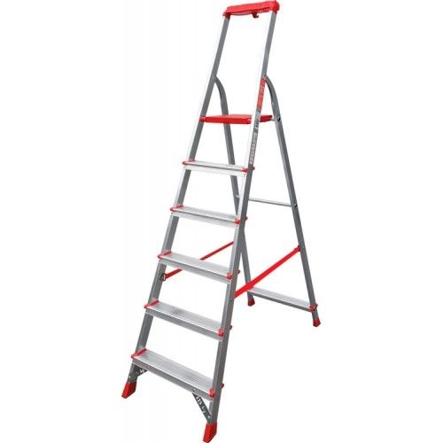 ПроизводителиЛестница-стремянка алюм. проф. с лотком органайзером NV3150 (6 ступ. 125/198см, 5.4кг) Новая высота