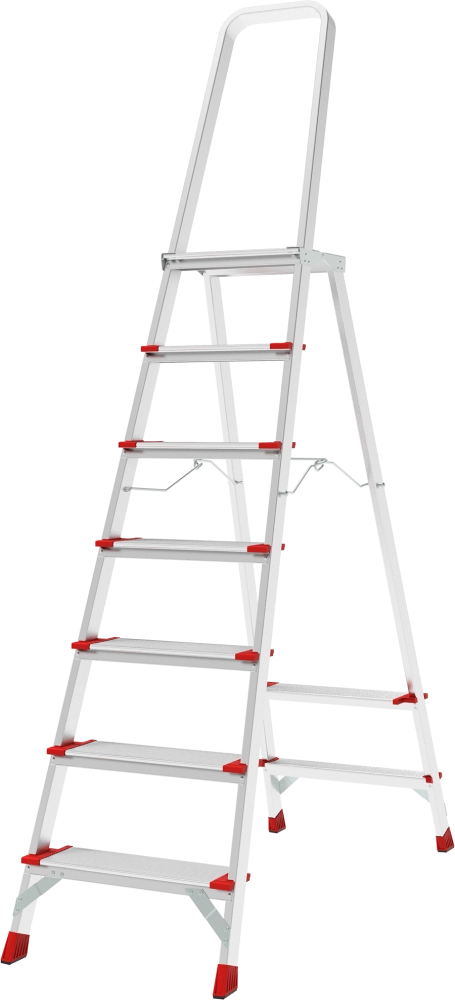 ПроизводителиЛестница-стремянка алюм. с дугой и складн. площадкой NV3137 (7 ступ. 153/222см, 9.4кг) Новая высота