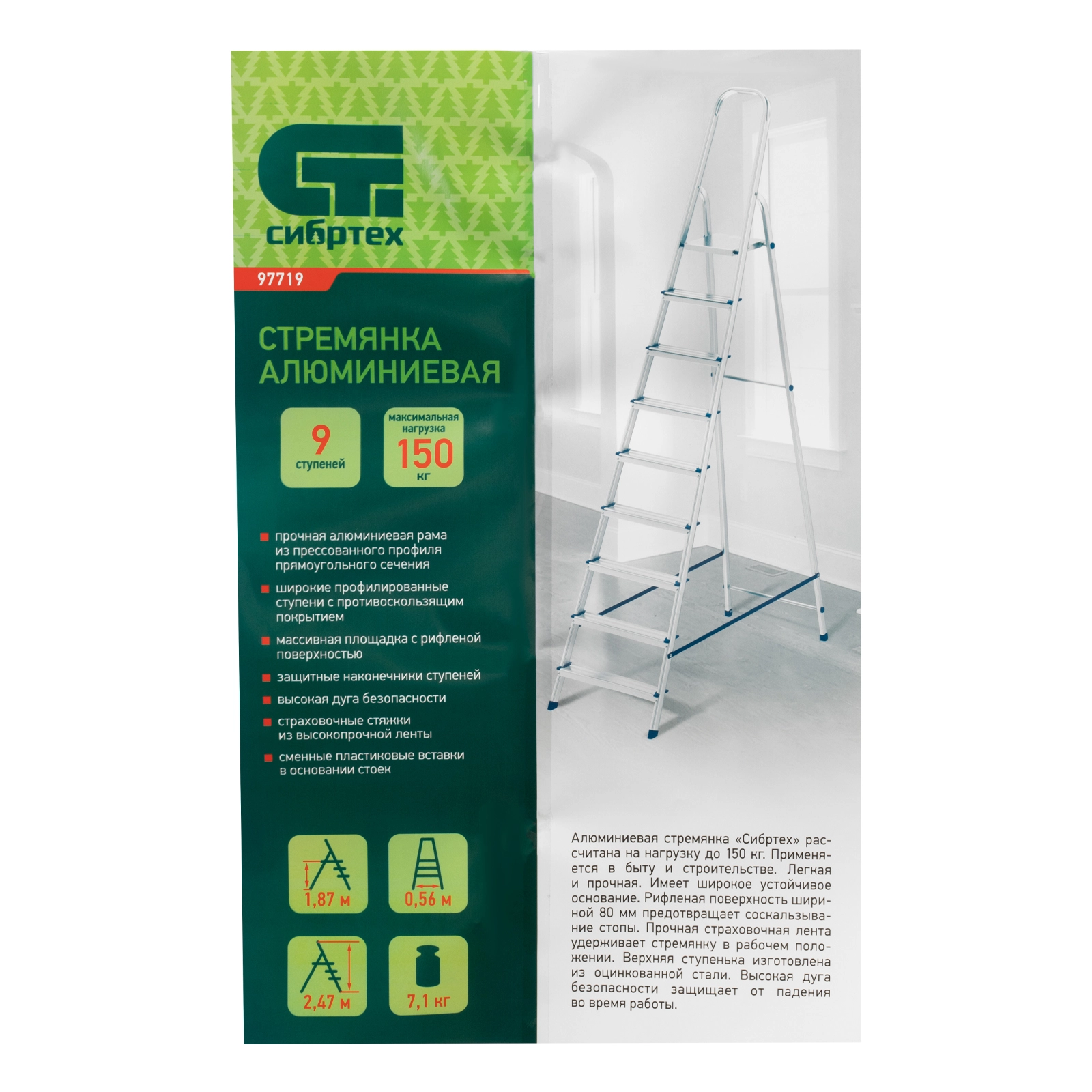 ПроизводителиЛестница-стремянка алюмин., 9 ступ, 1870мм, слож.2670х560х110мм, (97719) СИБРТЕХ