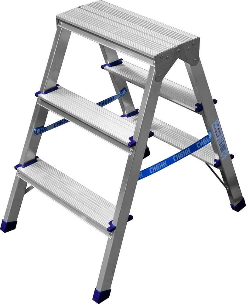 ПроизводителиЛестница-стремянка двухсторонняя алюминиевая, 3 ступени (38825-03) СИБИН