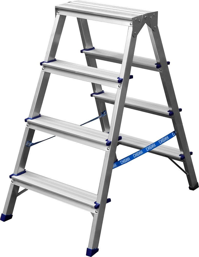 ПроизводителиЛестница-стремянка двухсторонняя алюминиевая, 4 ступени (38825-04) СИБИН