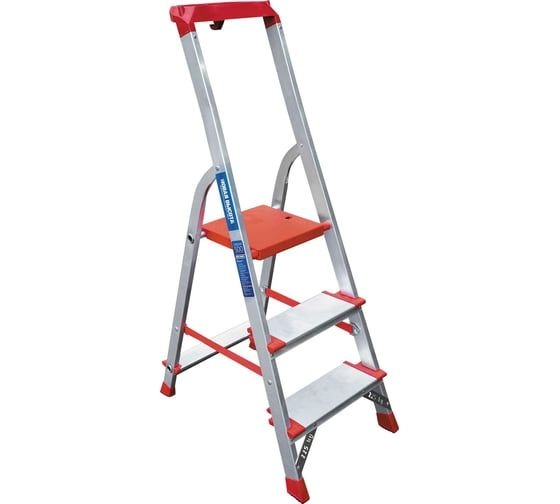 Профессиональная стремянка Новая Высота NV3118, 1x3 ступени 130 мм, органайзер 3118103 предназначена для интенсивного использования.