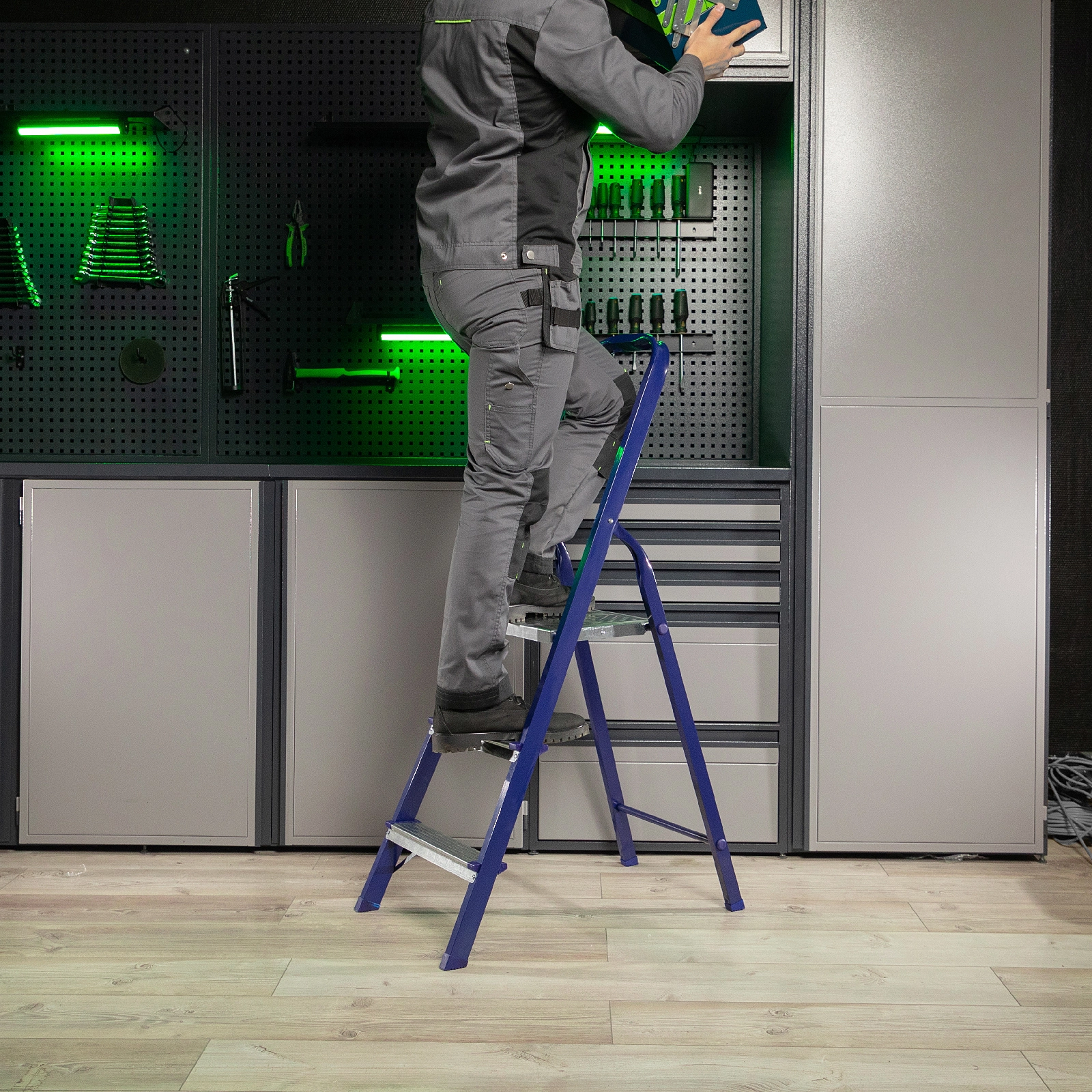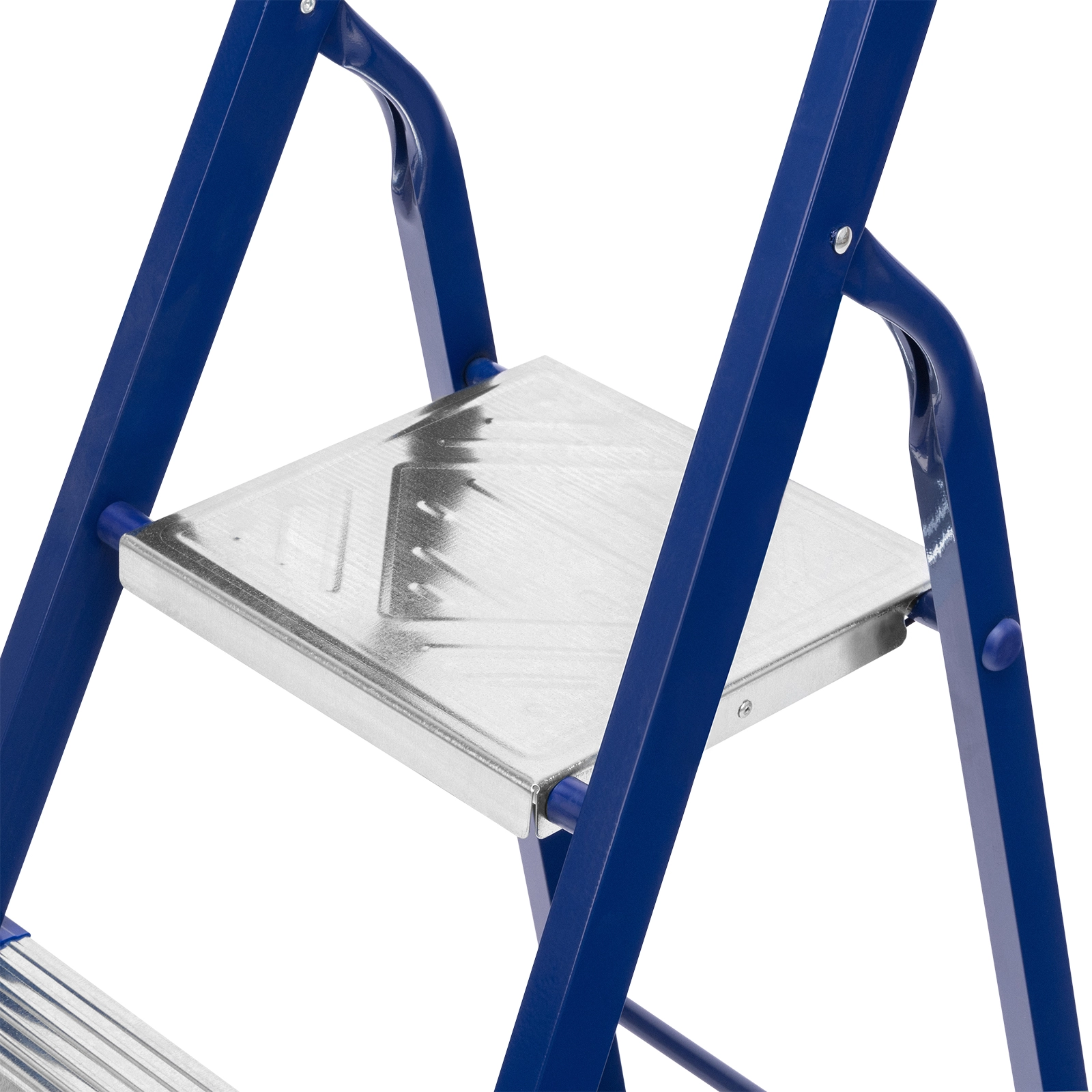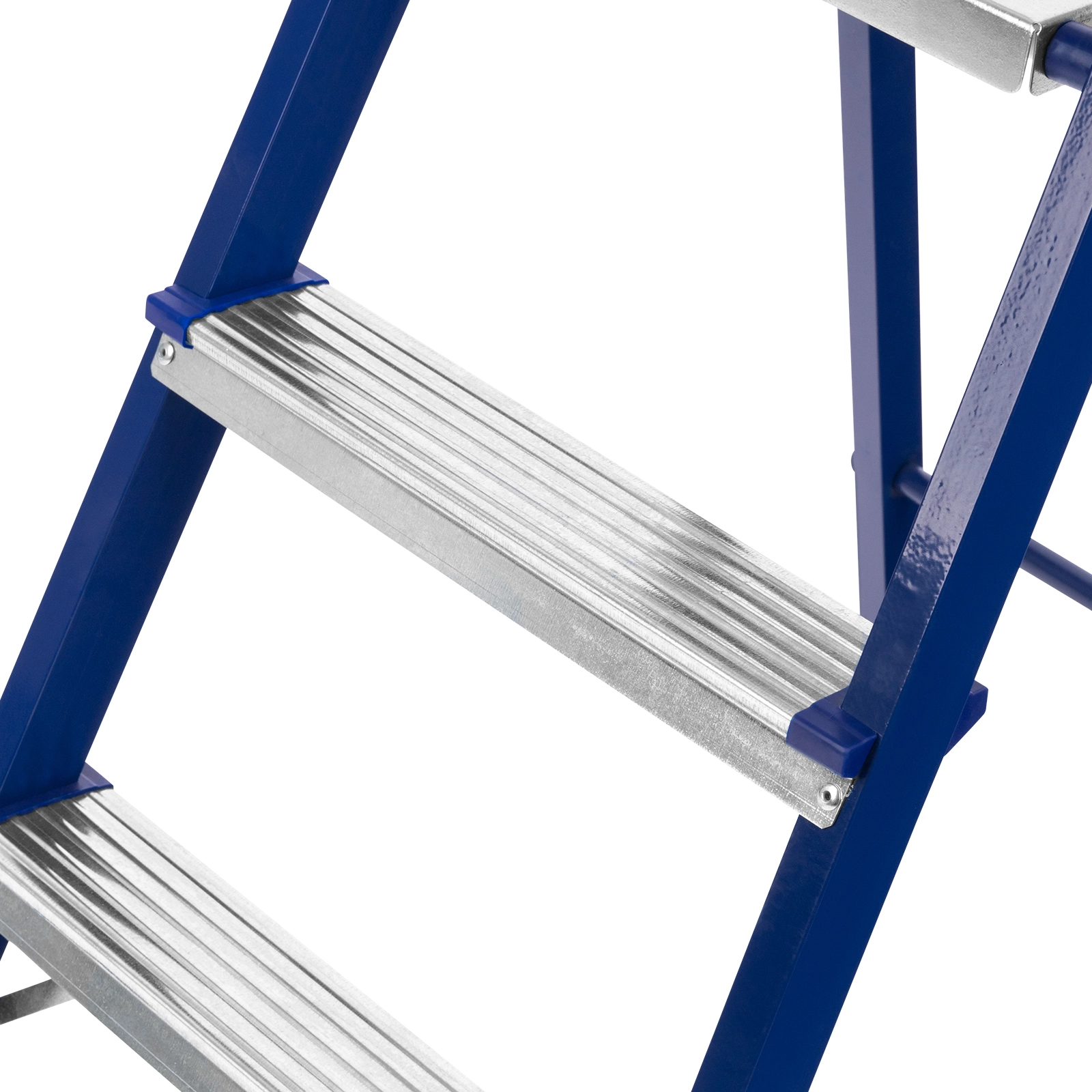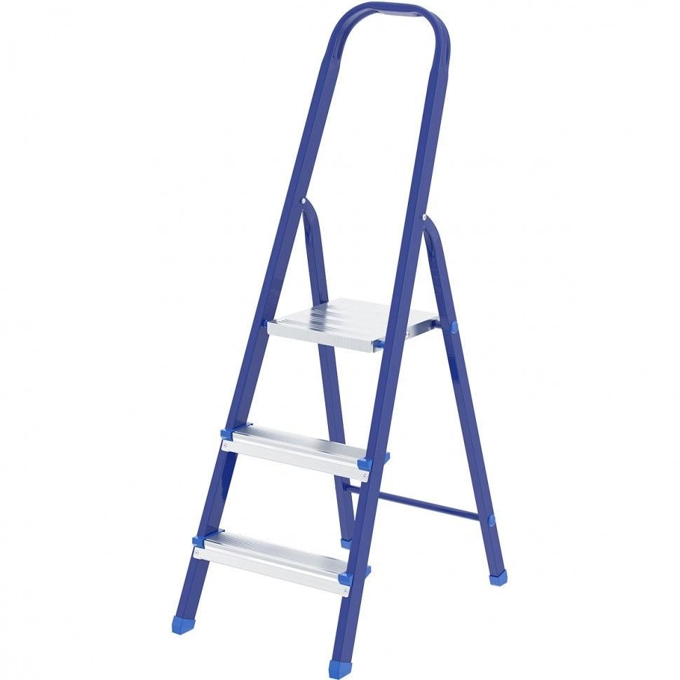 Стальной профиль рамы покрыт порошковой эмалью, защищающей стремянку от коррозии и продлевающей срок ее службы.