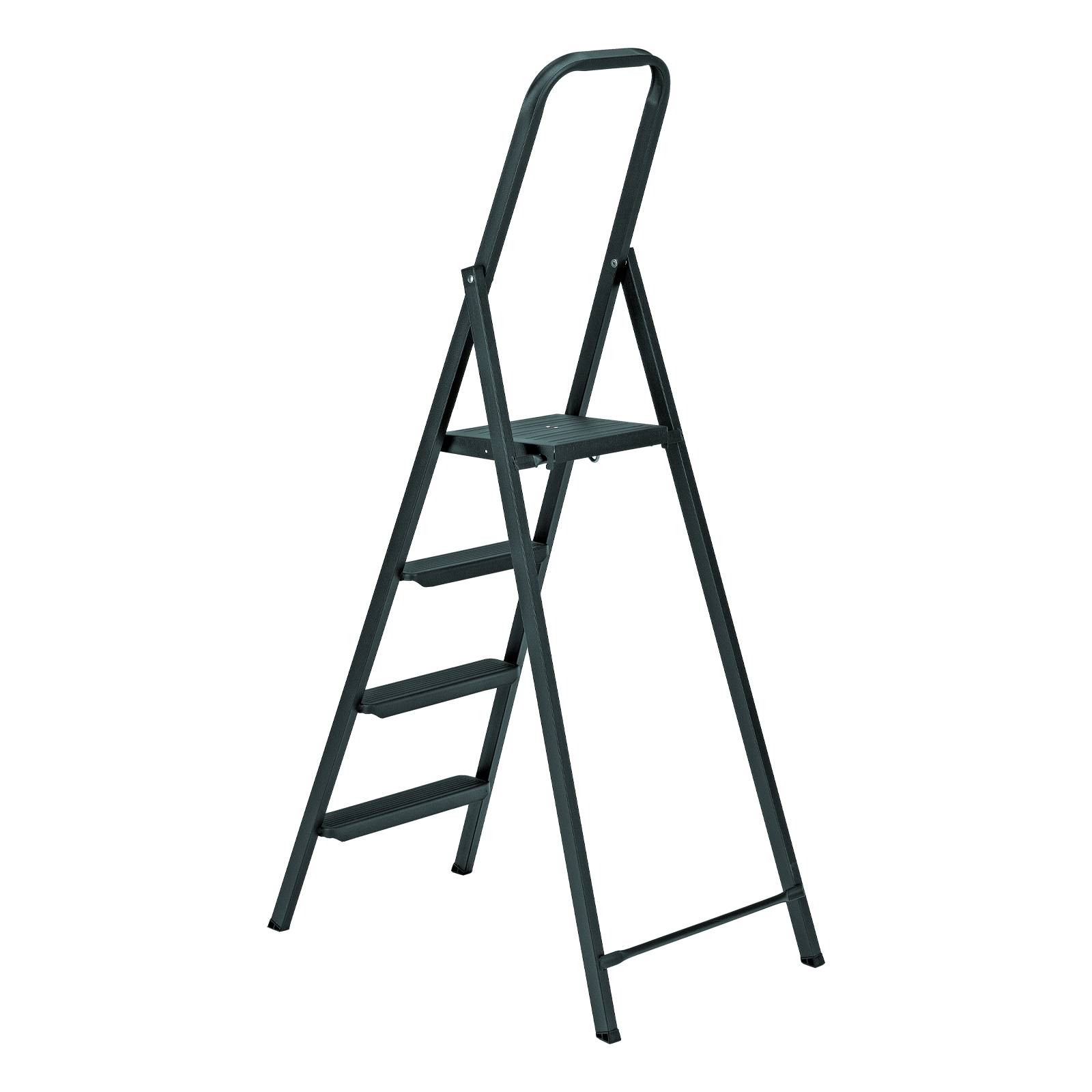 - Удобное хранение и транспортировка — стремянка весит 5,8 кг, ее размеры в сложенном состоянии составляют 1575 х 445 х 87 мм.