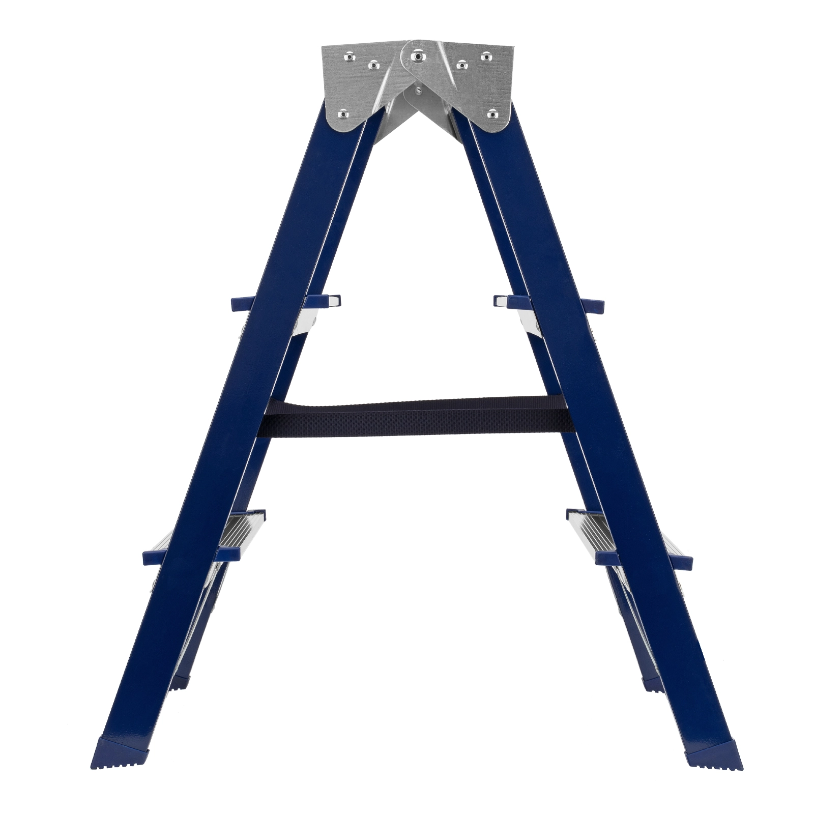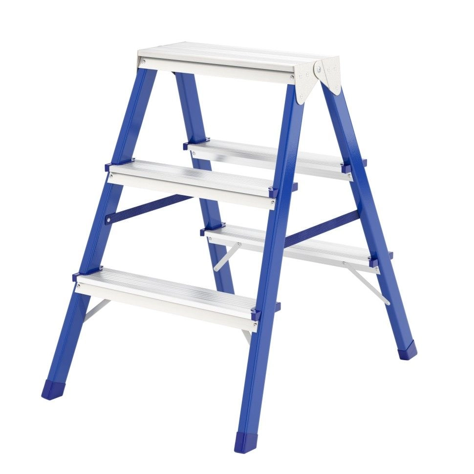 Двусторонняя стальная стремянка Сибртех 97933 с 3 ступенями используется строителями, работниками коммунальных служб, а также полезна в быту.