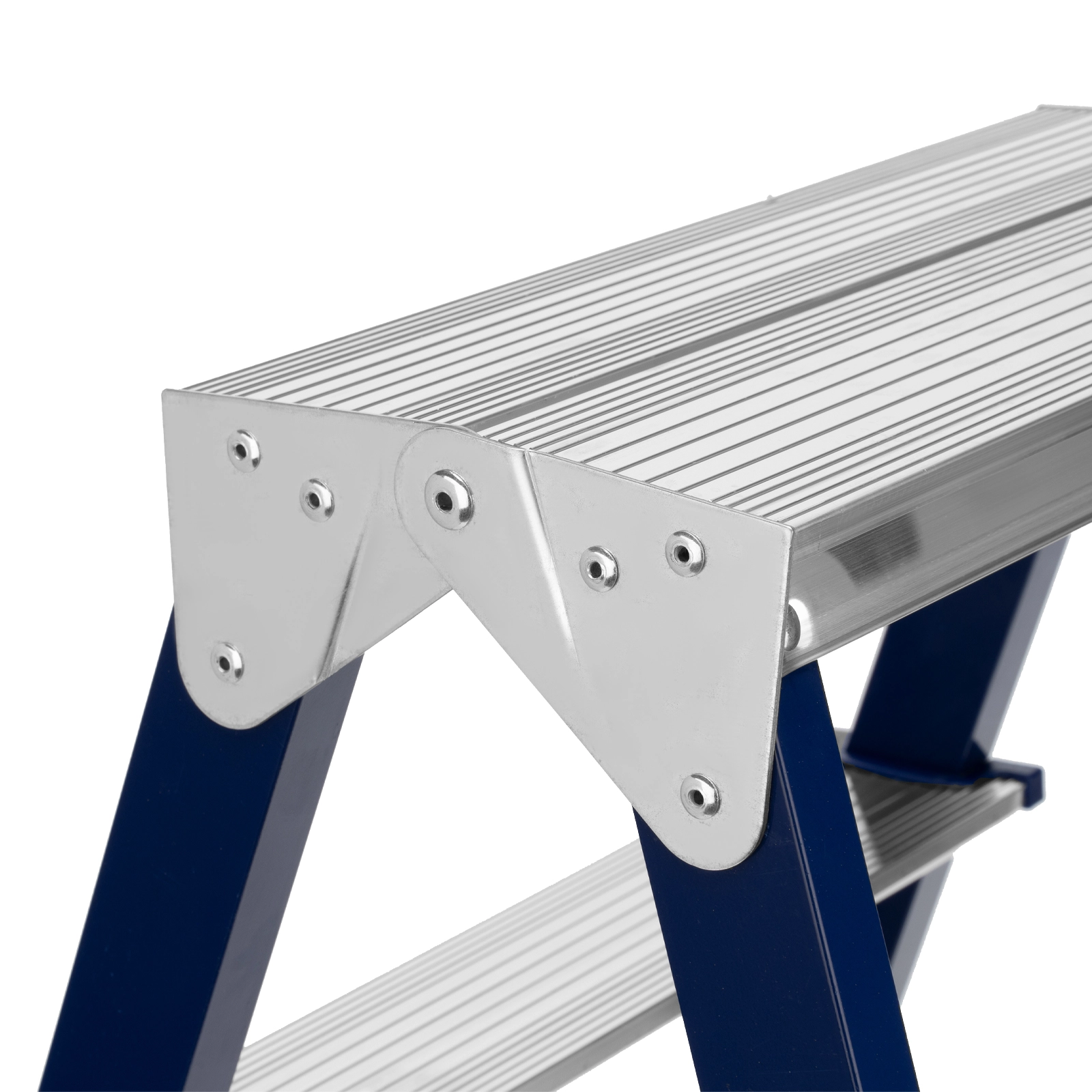 Широкие алюминиевые ступени устойчивы к прогибанию, а их рифленая поверхность не дает поскользнуться.