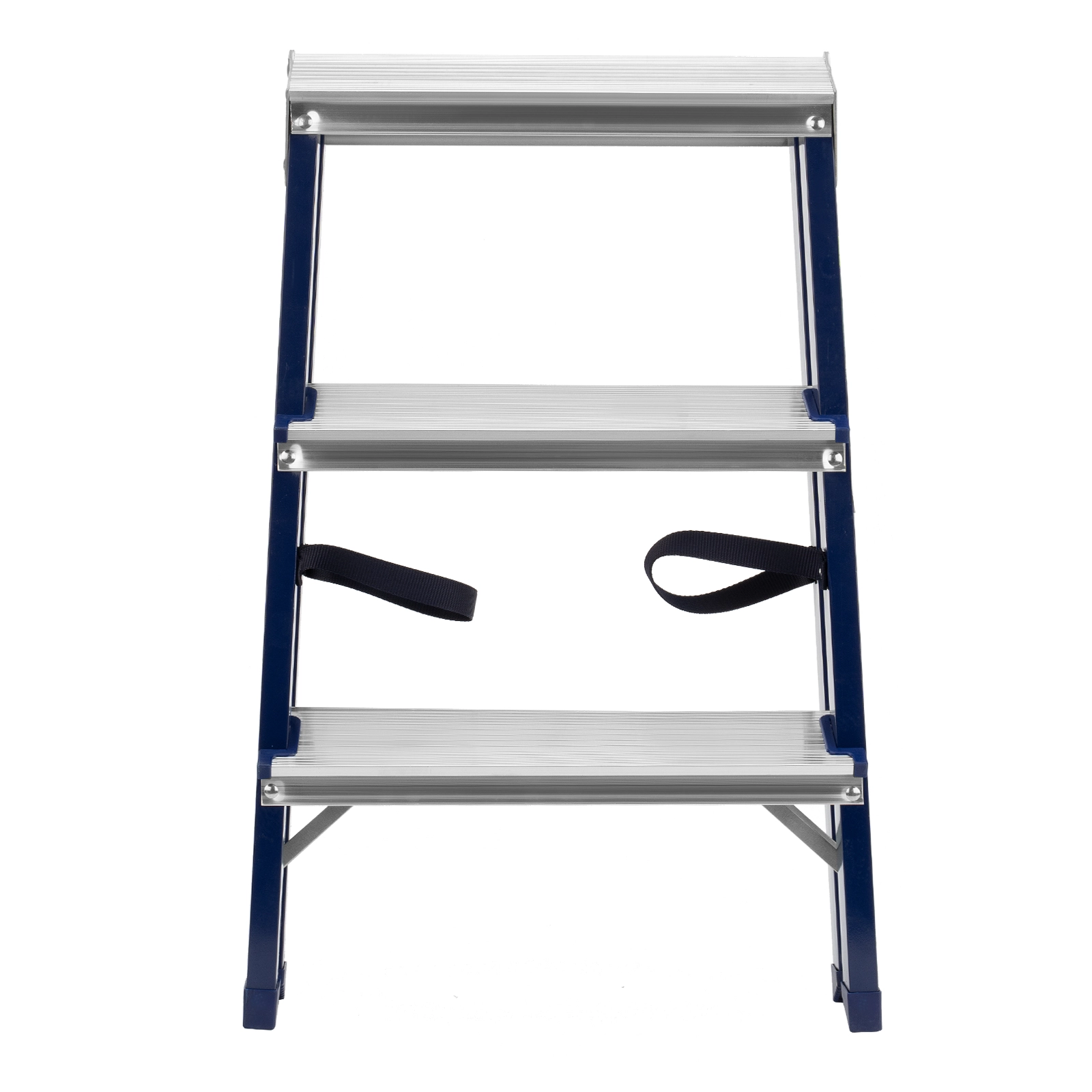 ПроизводителиЛестница-стремянка стальн. двустор., 3 ступ, 640мм, слож.710х440х160мм, (97933) СИБРТЕХ