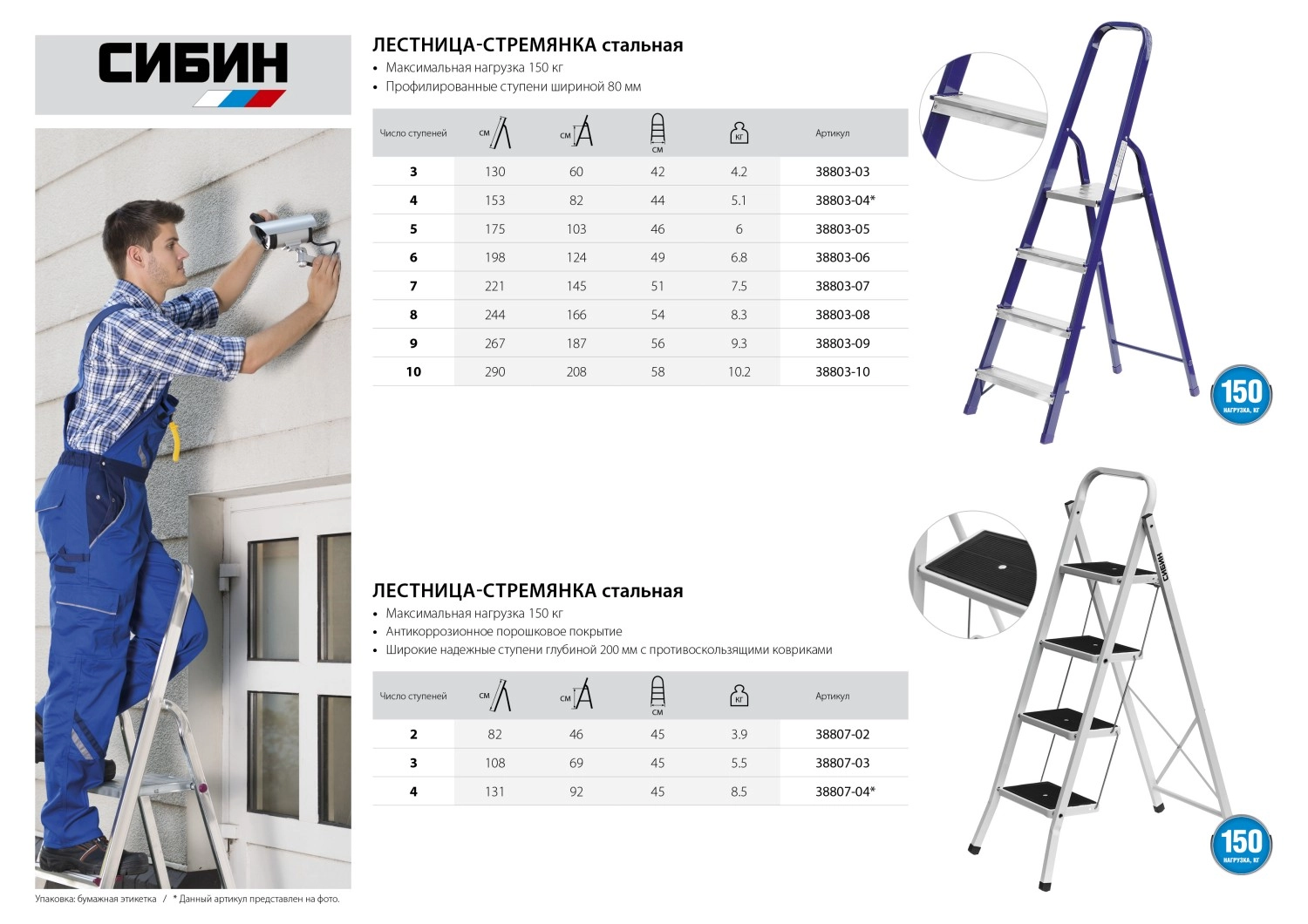 СТАНДАРТУровень качества. При классификации продуктов, имеющих схожее наименование, но обладающие различными потребительскими свойствами мы приняли следующий Вес факторов: 80% - подтвержденный ресурс, 15% - заявленная производительность/скорость, 5% - субъективные ощущения потребителя. ПодробнееКод товара: 0026566(0)Лестницы СИБИН – легкость и удобство в эксплуатации благодаря сочетанию надежной конструкции и высококачественных материалов.250.81 руб. Скидка только для физ. лиц 9% 228.24 руб. за шт