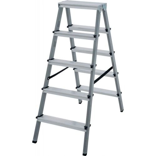 ПроизводителиЛестница-стремянка стальная двухсторон. алюм/ступ NV1140 (5 ступ. 109/118см, 5.5кг) Новая Высота